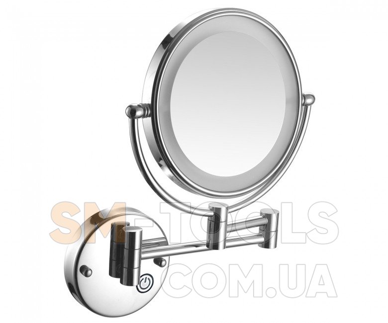 Дзеркало кругле, двостороннє, хромоване покриття, високоякісна латунь, збільшення 1Х та 3Х, чутлива сенсорна кнопка включення, підсвічування, зовнішнє підключення, гарантія 3 роки.