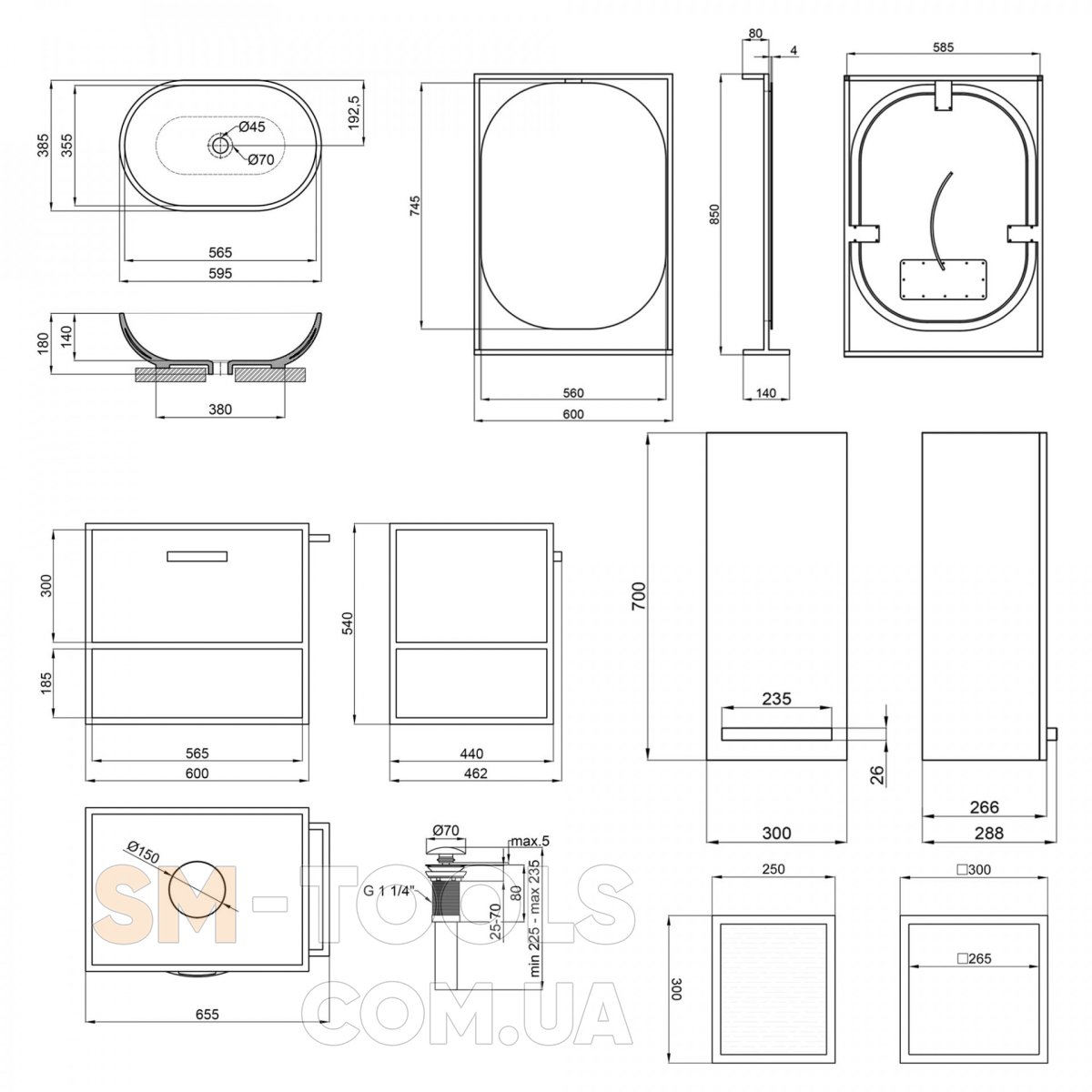 Тумба + раковина + дзеркало + полиця + напівпенал
