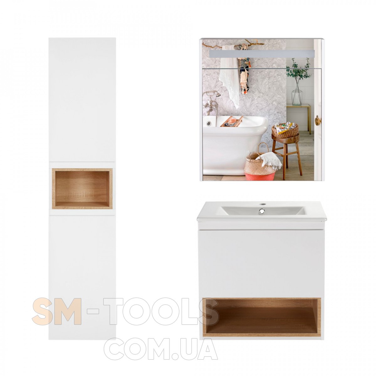 Комплект меблів для ванної кімнати Qtap Robin тумба з раковиною + дзеркальна шафа + пенал QT044RO42969