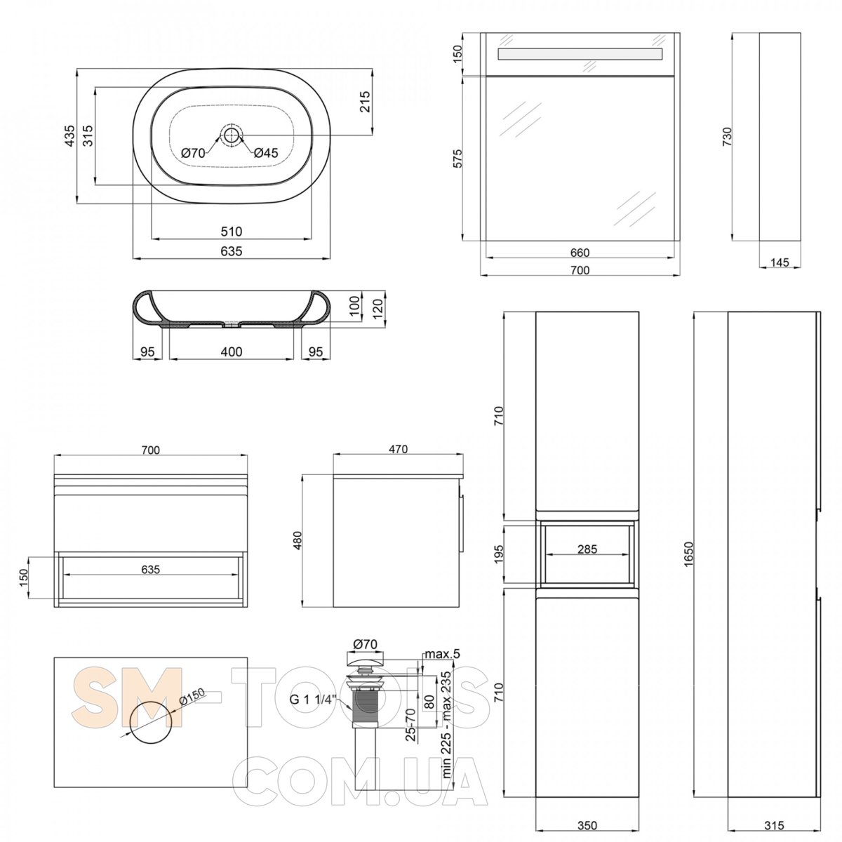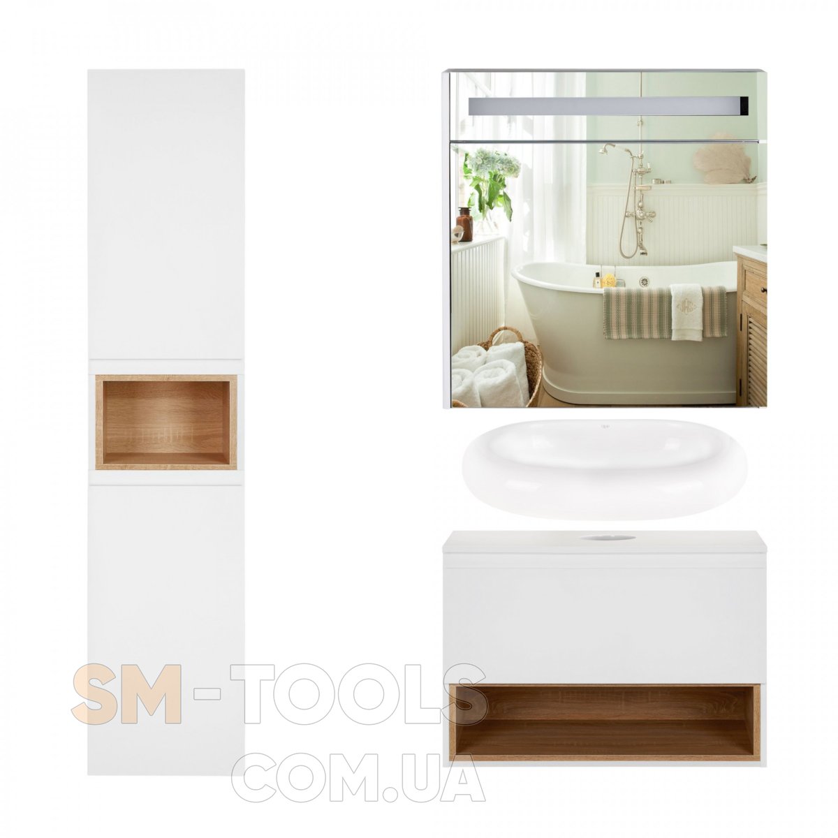 Тумба + раковина + дзеркальна шафа + пенал