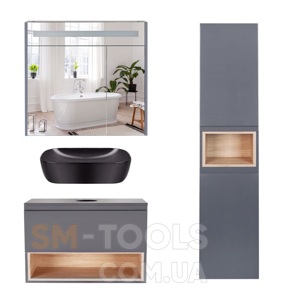 Тумба + раковина + дзеркальна шафа + пенал