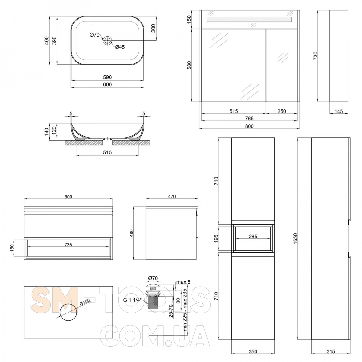 Ширина виробу, мм 800