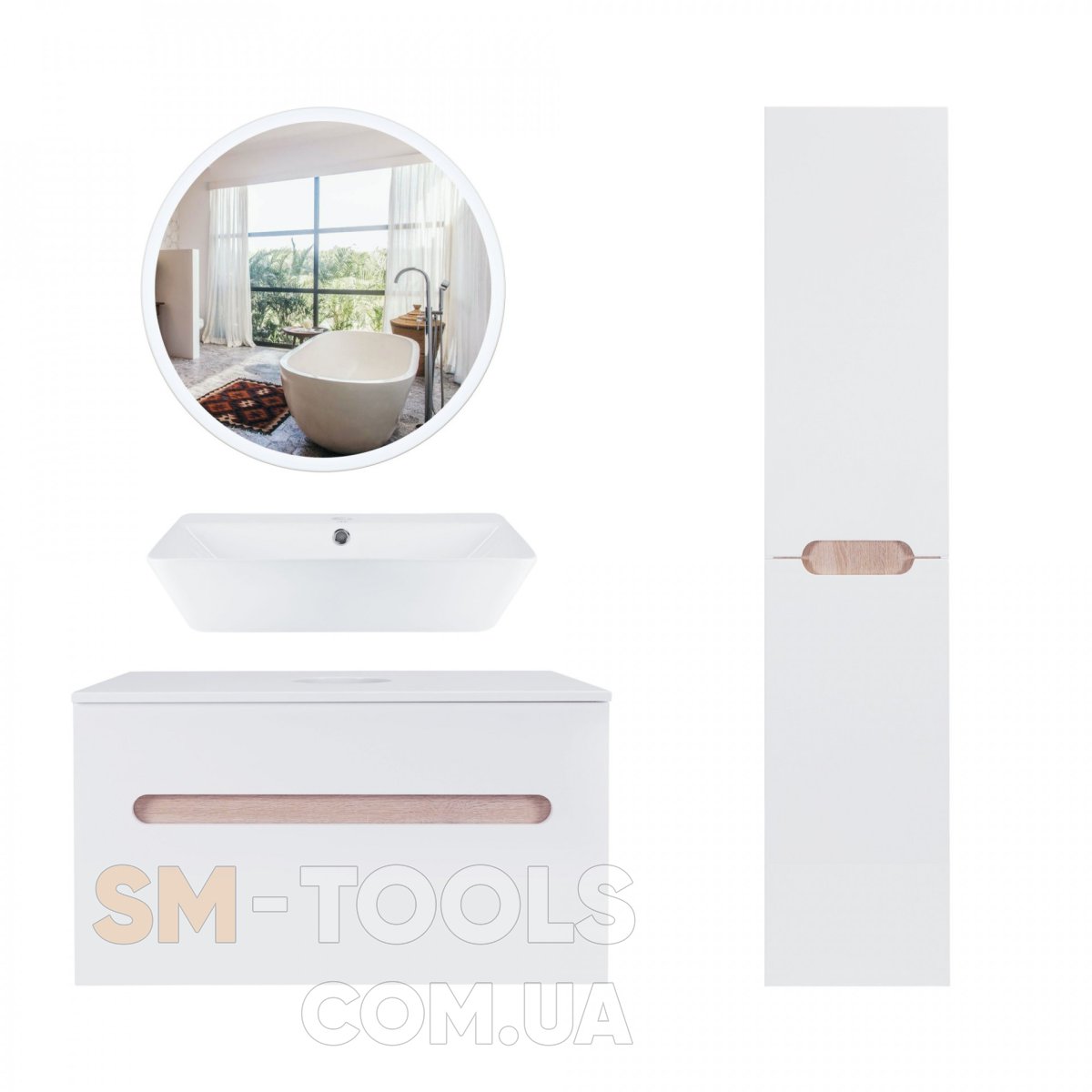 Комплект меблів для ванної кімнати Qtap Virgo тумба + раковина + дзеркало + пенал QT044VI43001