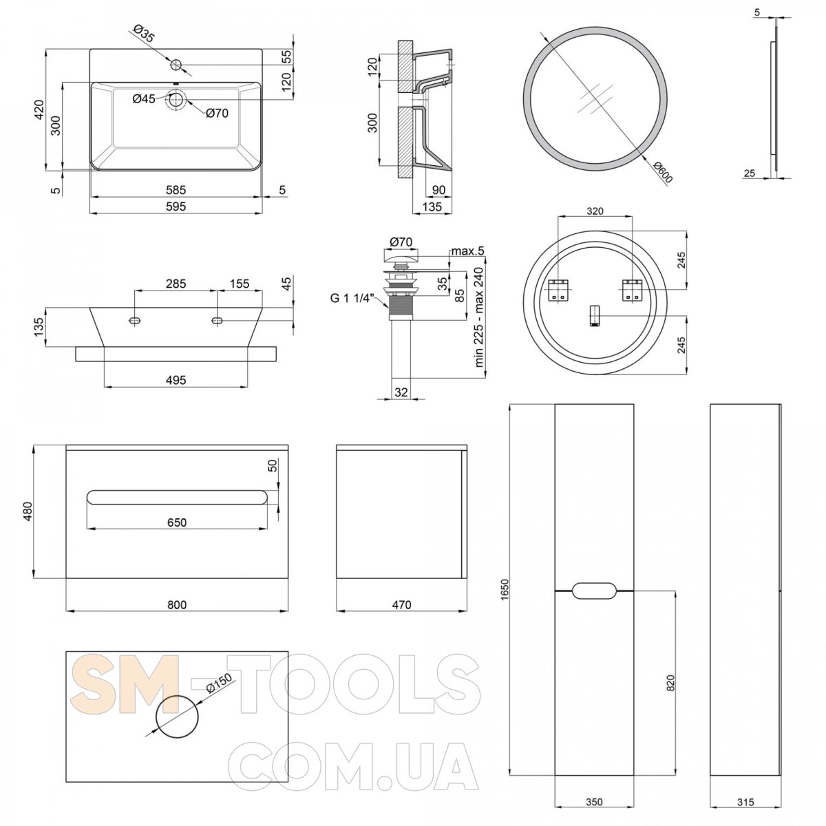 Комплектація Комплект меблів для ванної кімнати Qtap Virgo тумба + раковина + дзеркало + пенал QT044VI43001: