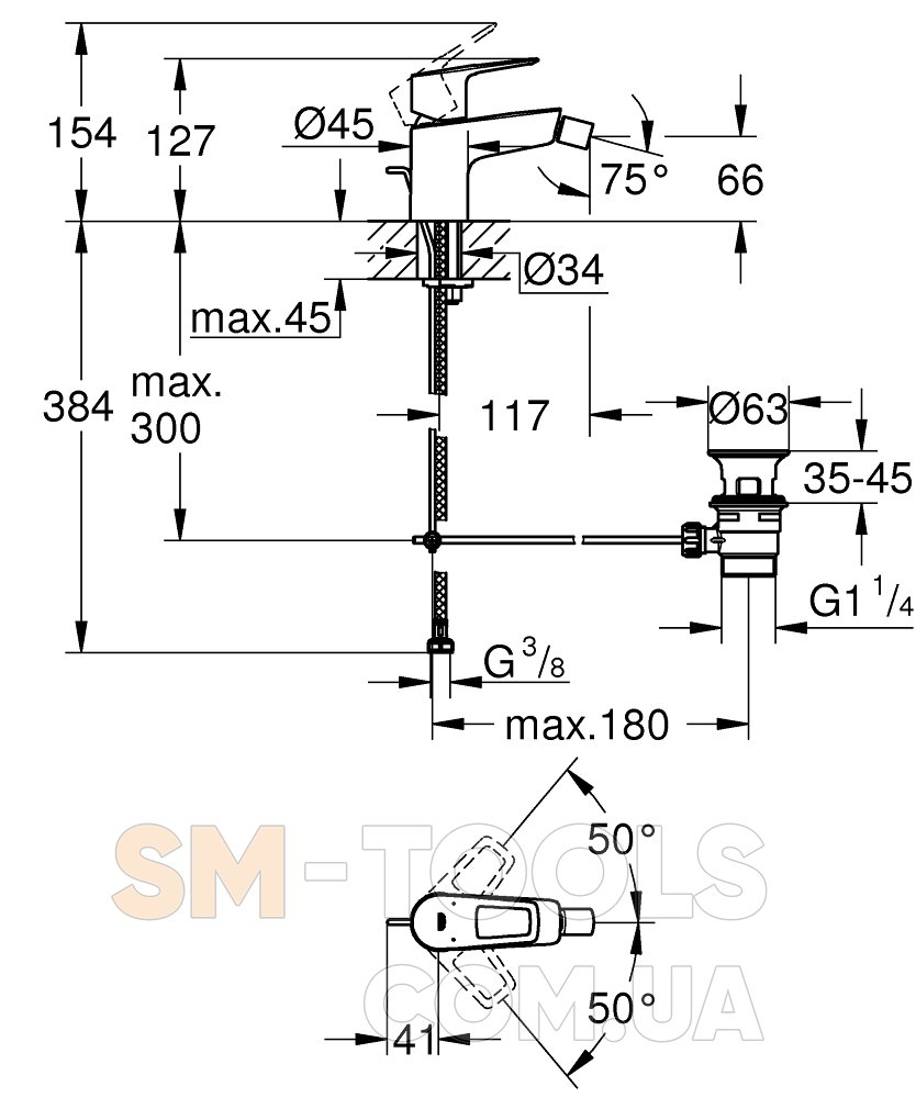 Опис Змішувач для біде Grohe BauLoop New 23338001: