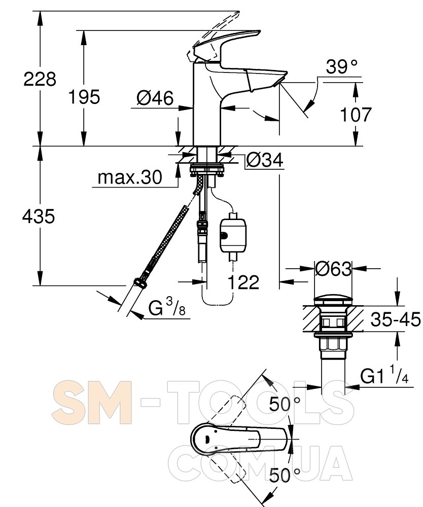 Опис Змішувач для умивальника Grohe Eurosmart New 23976003: