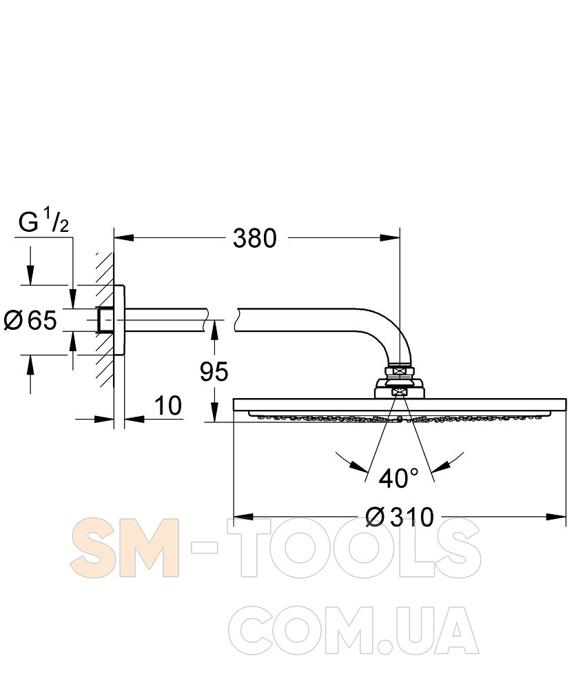 Rainshower® Душовий кронштейн 380 мм (28361000 (Душовий кронштейн GROHE Rainshower, хром))
