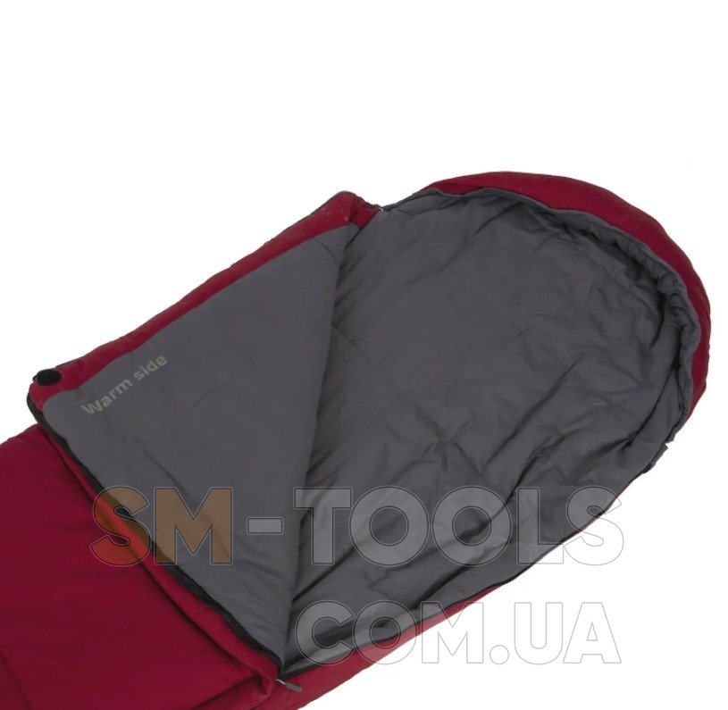 - Спальний мішок має збільшену довжину і дозволяє легко розміститися всередині користувачам висотою до 210см;