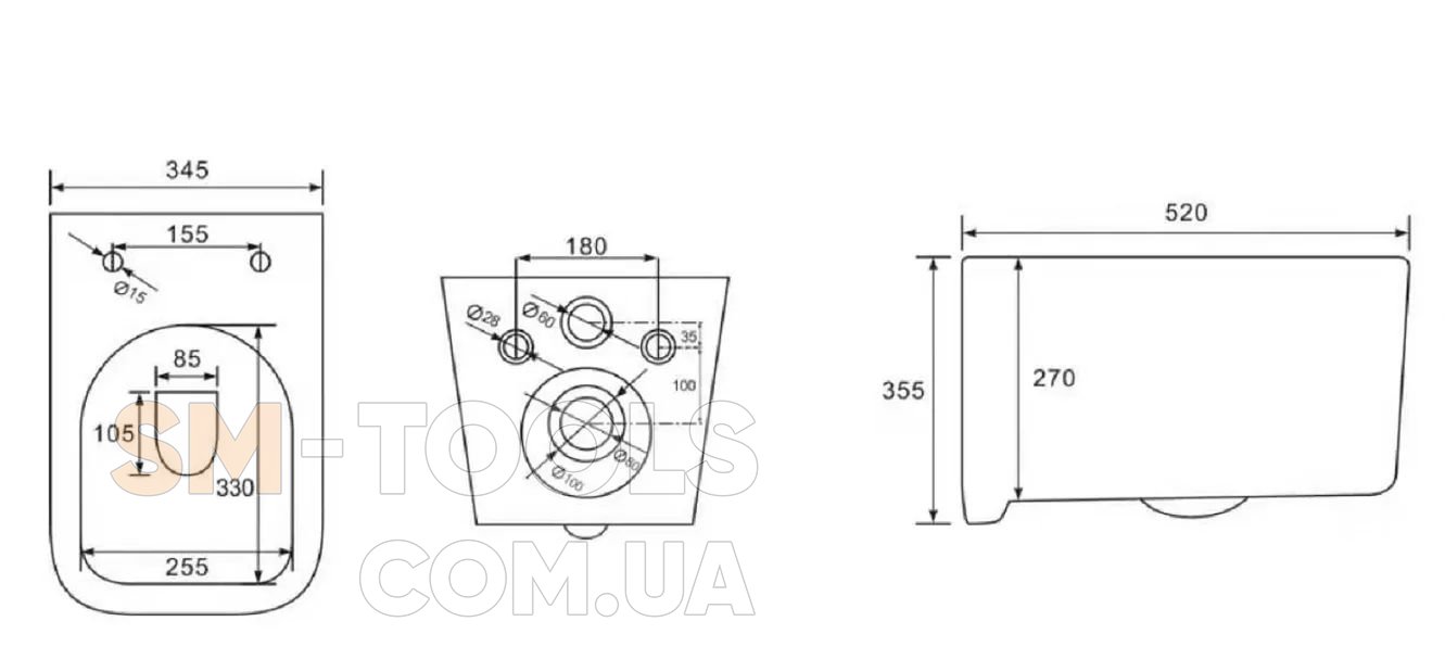 Характеристики Унітаз REA TINO RIMLESS REA-C2630: