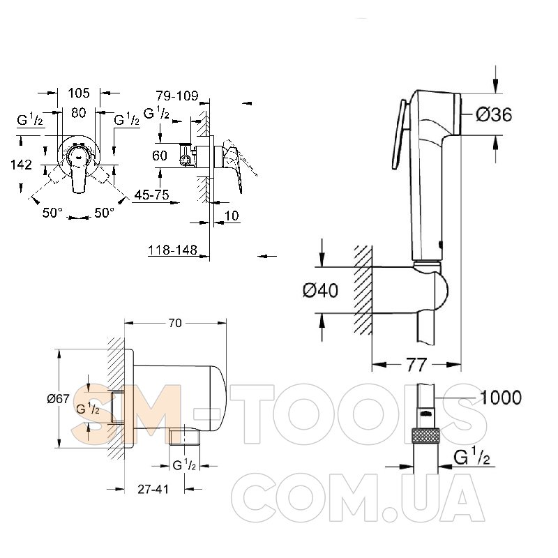 Набір для гігієнічного душу GROHE Tempesta-F (гігієнічний душ, настінний тримач, шланг 1000 мм), хром (26352000)