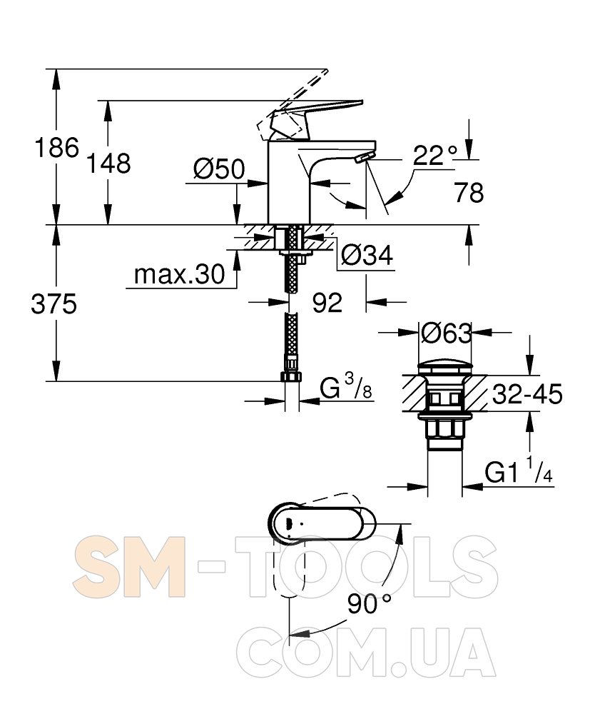 Змішувач для умивальника Grohe Eurosmart Cosmopolitan 23927000