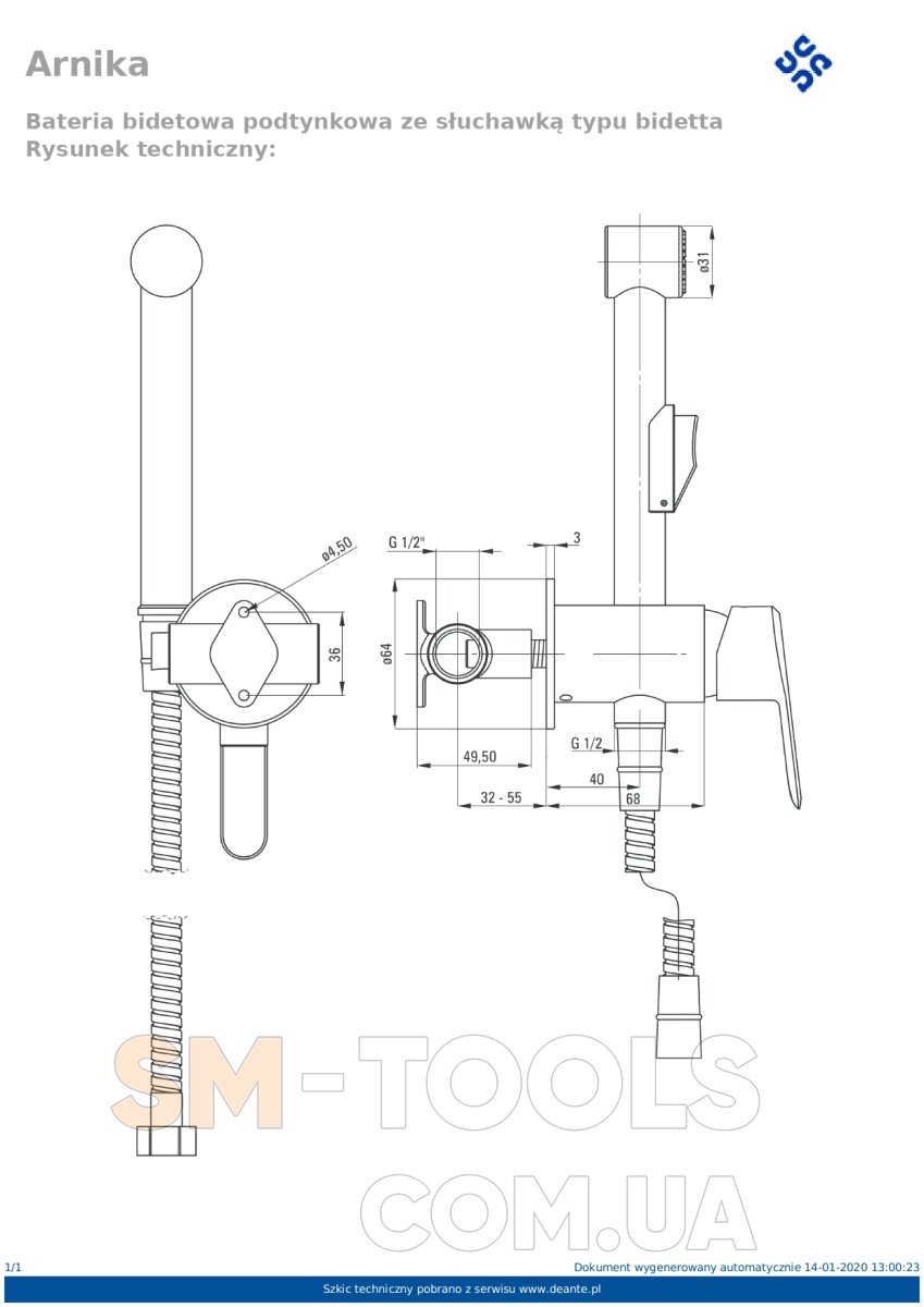 Характеристики Змішувач + гігієнічний душ Deante Arnika BQA_034M: