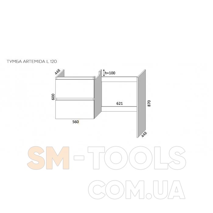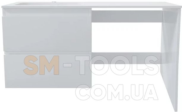 Підвісна тумба Artemida L 120 має продуману конструкцію, яка поєднує ящики для зберігання речей та простір для встановлення пральної машини з горизонтальним типом завантаження. Це дозволяє раціонально організувати розміщення побутової техніки та меблів для ванної кімнати. Розміщення пральної машини передбачається праворуч, ящики розташовані ліворуч. Два великі висувні ящики на якісній фурнітурі дозволять зберігати необхідні речі для ванної кімнати. Фасадна частина тумби виготовлена з високоякісного МДФ товщиною 1,6 см у білому відтінку із глянсовою поверхнею. Корпус виконаний з ДСП. Тумба призначена для монтажу на стіну. Це дає ряд переваг, серед яких легкий зовнішній вигляд, простота прибирання та підтримання гігієни.