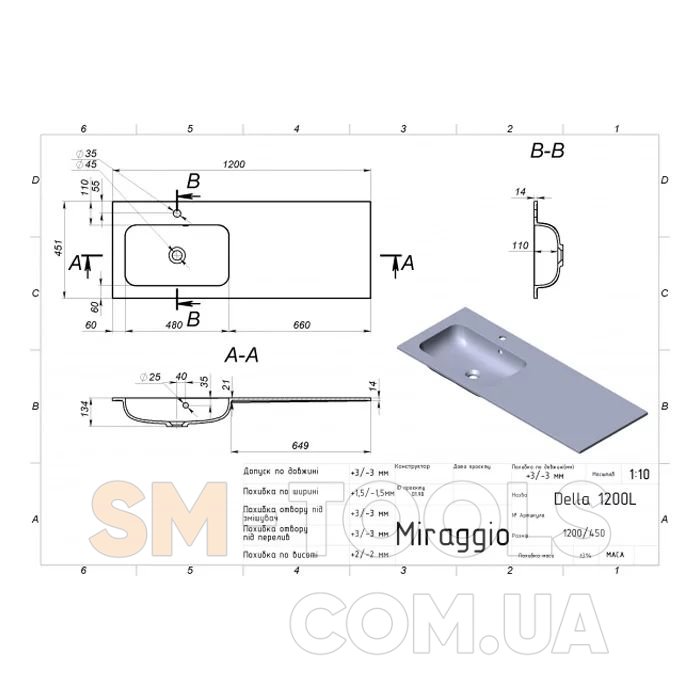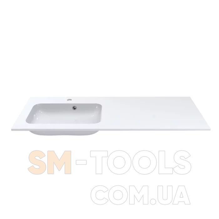 Умивальник Miragio Della 1200 L з чашею ліворуч має сучасний мінімальний дизайн та унікальні властивості. Встановивши таку модель на тумбу, її широке крило з правого боку може замінити стільницю, що спрощує прибирання і пропонує багато місця для розміщення приладдя для ванни. Такий умивальник є практичним та функціональним обладнанням для ванної кімнати. Раковина оснащена майданчиком для змішувача, на якому передбачено один отвір для монтажу, та комплектується італійським переливом. Глянцева біла поверхня підкреслює розкіш та високу якість виробу. Умивальник виготовлений із штучного мармуру бренду Miraggio. Основним компонентом такого штучного каменю під назвою MiraMarble є натуральна мармурова крихта, яку скріплюють поліефірною смолою. Технологія такого лиття дозволяє створювати вироби складних форм, що підлягають ремонту та реставрації. Штучний мармур стійкий до перепадів температур, дії вологи та ультрафіолету. Антибактеріальне покриття, крім високих гігієнічних характеристик, забезпечує особливу гладкість поверхні. Догляд за таким матеріалом не вимагає спеціальних засобів для чищення, можна використовувати навіть абразиви. А при втраті гладкості поверхню рекомендується просто відполірувати відповідно до рекомендацій виробника. Це дозволяє підтримувати ідеальний вигляд дуже довгі роки.