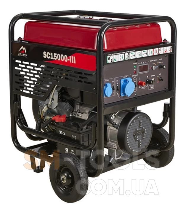 Бензиновий генератор Vulkan SC15000-III – оснащений надійним, стійким до роботи в екстремальних умовах 4-тактним двигуном марки GB750 з максимальною потужністю на виході до 14 кВт. Ідеальний варіант для забезпечення резервного живлення приладів у великому будинку. Під час роботи повного бака палива об'ємом 45 л вистачить до 6 при 100% навантаженні. Захист при низькому рівні мастила. Зручна захищена панель. Термічний автоматичний вимикач захищає генератор від перевантаження чи перегріву. Індикатор сигналів тривоги значно спрощує контроль використання.