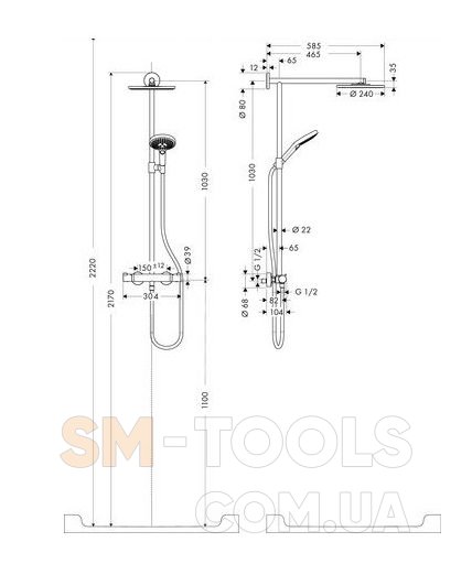Характеристики Душова система Hansgrohe Raindance 240 EcoSmart Showerpipe 27228000: