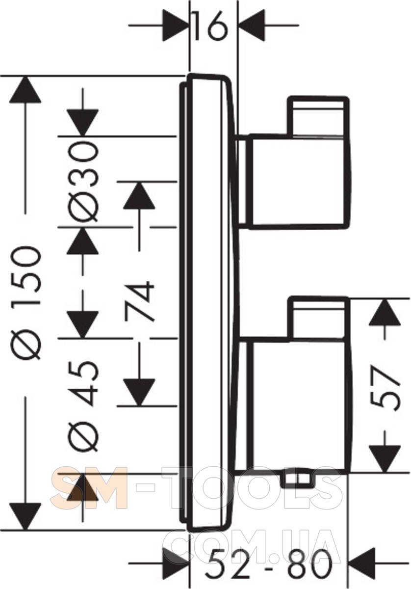 Характеристики Змішувач прихованого монтажу Hansgrohe Ecostat S 15758000+01800180: