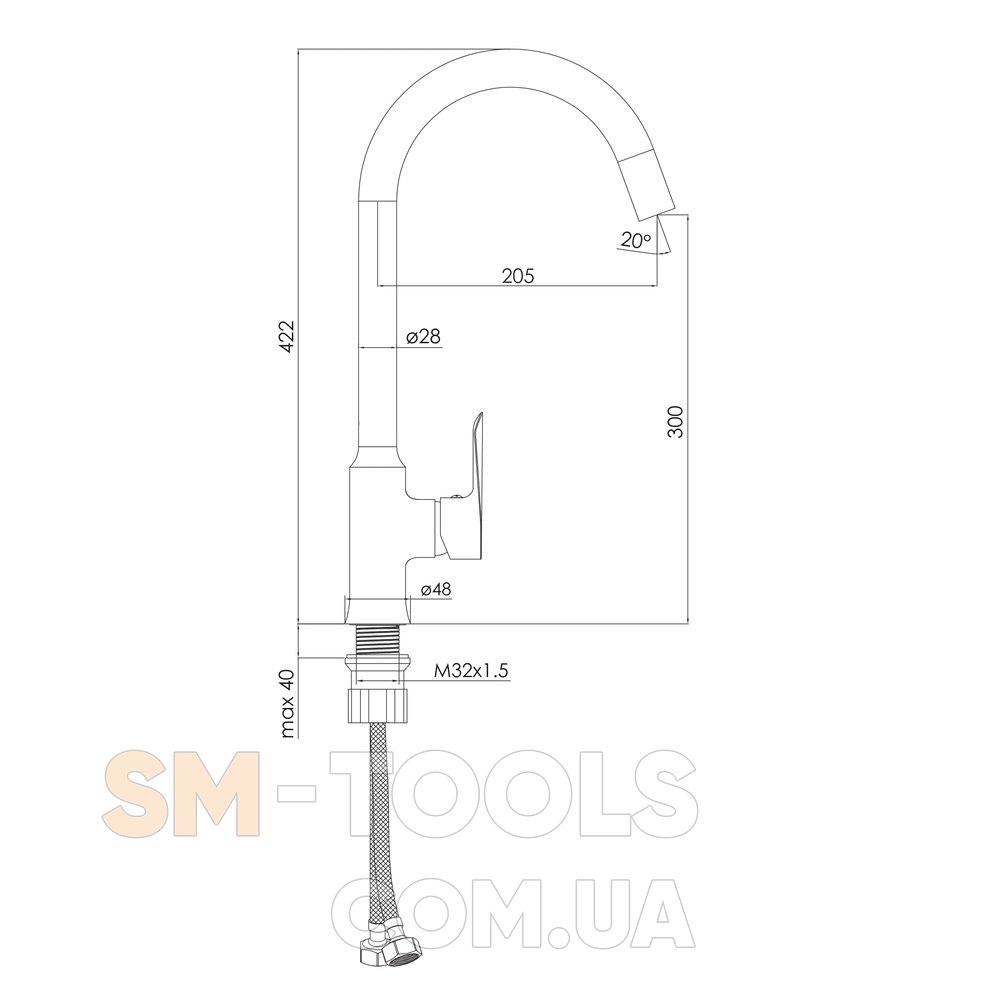 В комплект входять гнучкі шланги для підключення води з накидною гайкою 1/2", довжина 40 см"