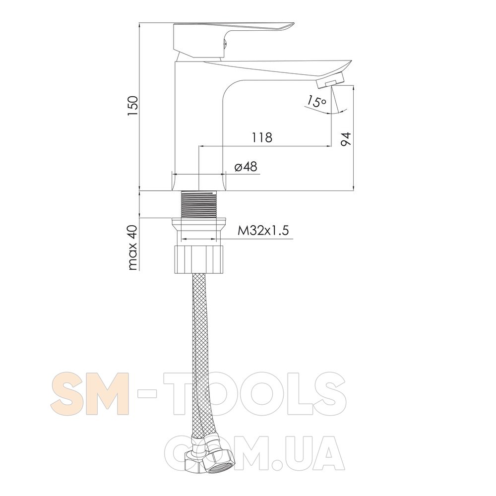 В комплект входять гнучкі шланги для підключення води з гайкою накидною 1/2"", довжина 40 см