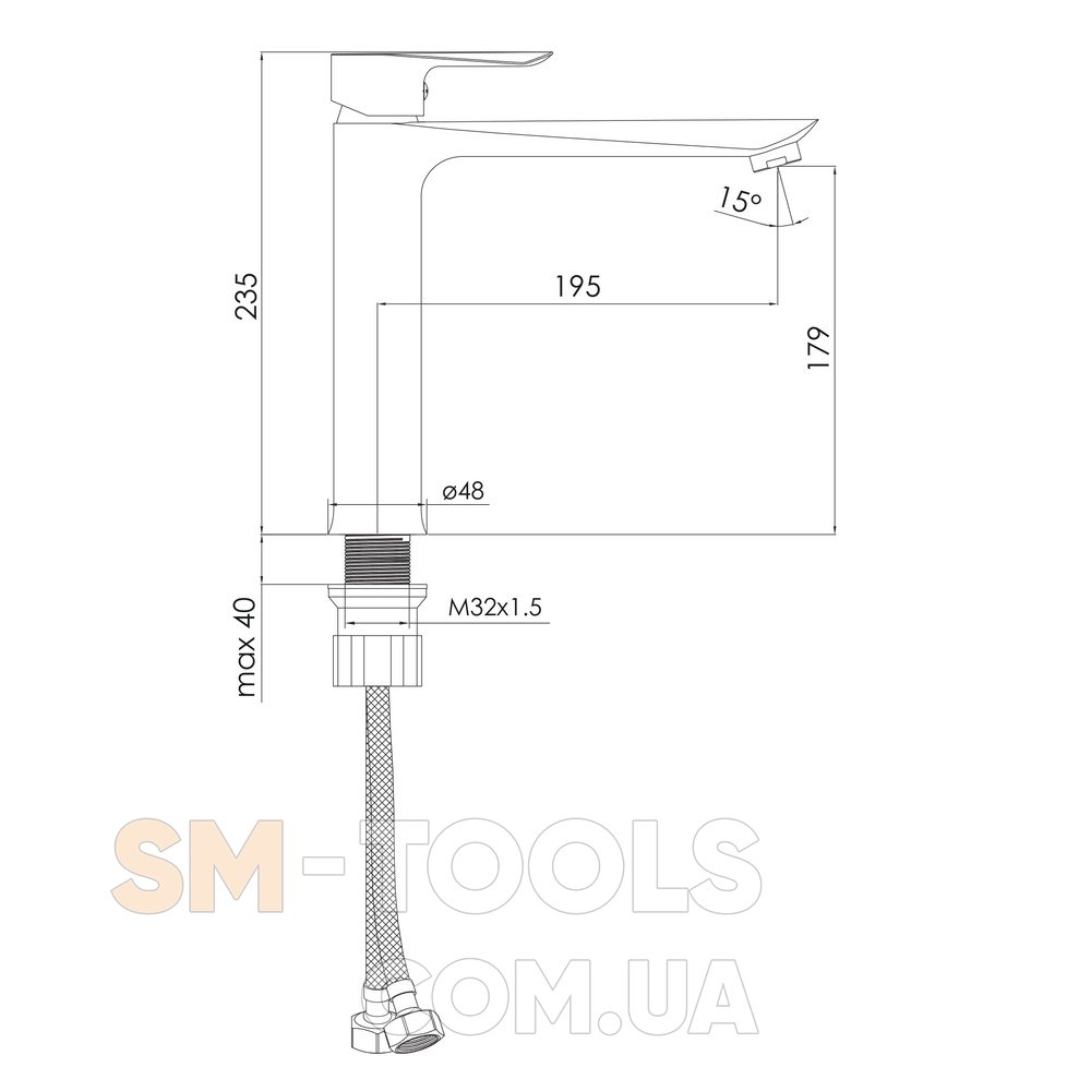 В комплект входять гнучкі шланги для підключення води з гайкою накидною 1/2"", довжина 40 см
