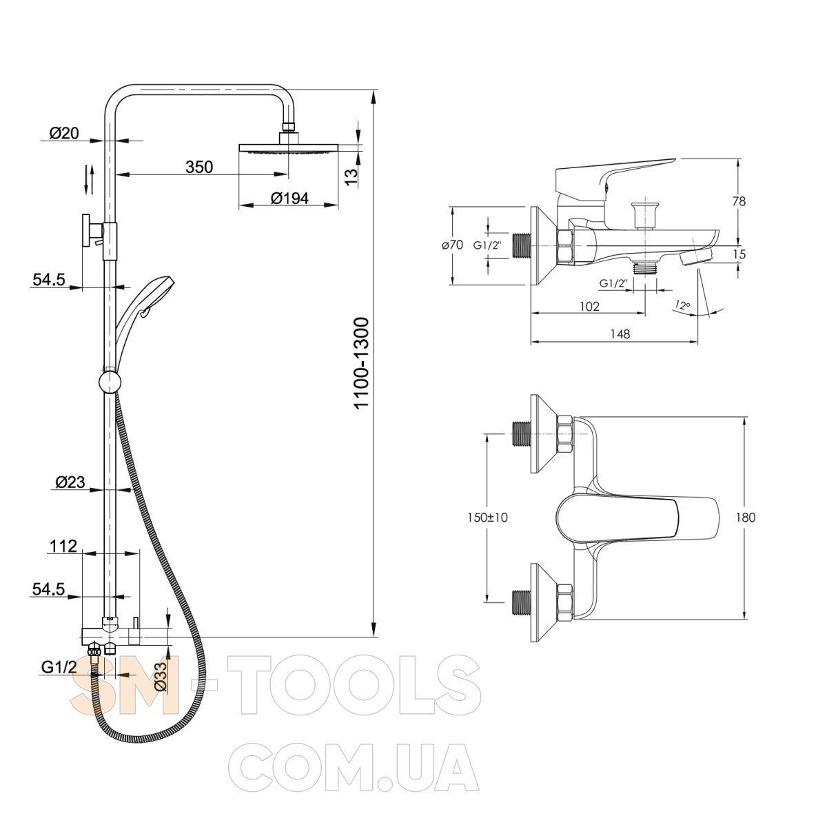 - діаметр верхнього душу 203 мм