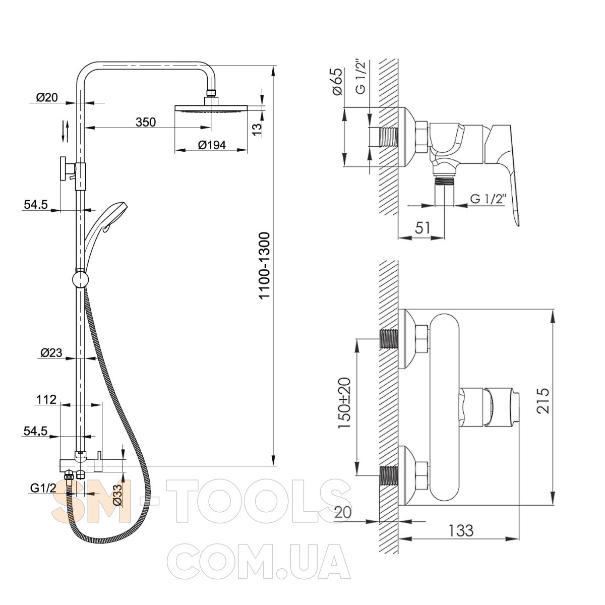 - діаметр верхнього душу 203 мм