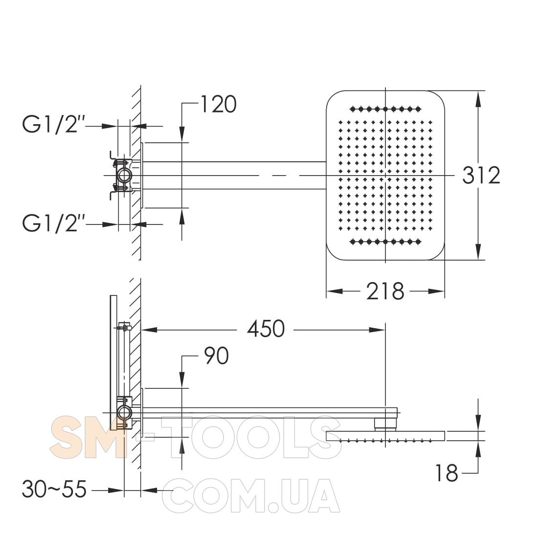 Верхній душ із настінним кронштейном: