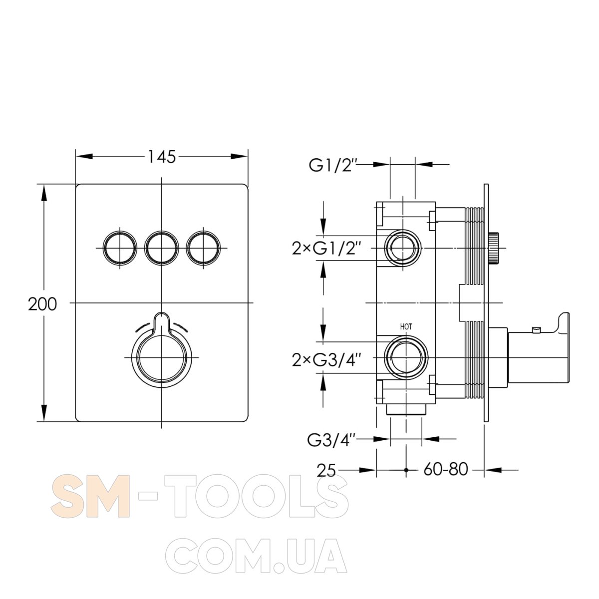 - кількість функцій ручного душу: 2