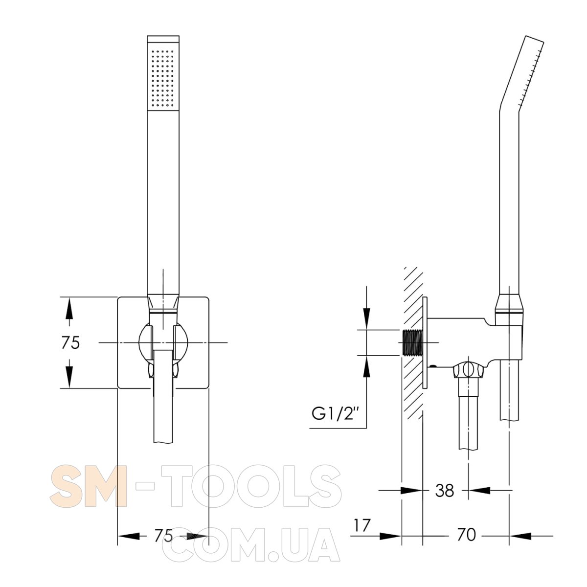 - Комплектація: душова лійка, душовий шланг, стінове під'єднання з тримачем лійки