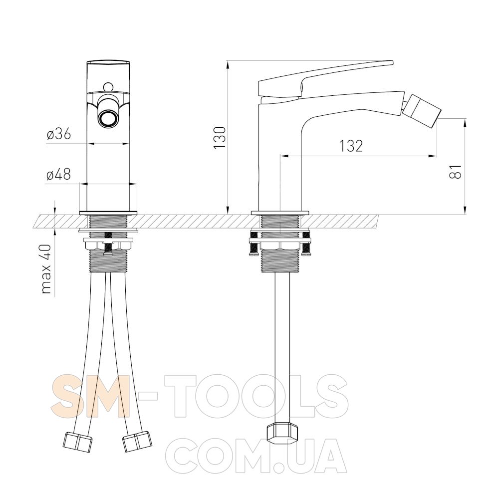В комплект входять гнучкі шланги для підключення води з гайкою накидною 1/2", довжина 50 см