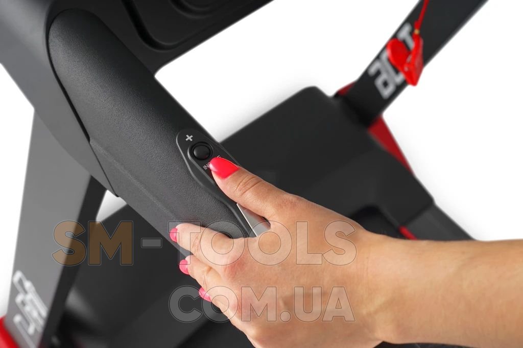 Бігова доріжка має автоматичне регулювання нахилу полотна до 15 градусів. Кнопка знаходиться на панелі приладів. Це дозволить вам підібрати інтенсивність тренування відповідно до ваших можливостей і відчути себе так, ніби ви біжите вгору.