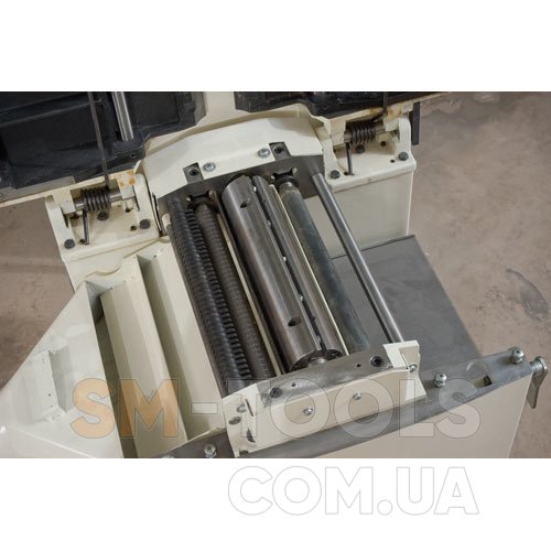 Фуговально рейсмусовый станок JET JPT-260 оснащен чугунным рабочим столом для фугования, который тщательно отполирован и имеет ровную плоскую поверхность. Подающая и разгрузочная части стола регулируются отдельно и позволяют легко выставить толщину снимаемой стружки (макс. съём стружки - 3 мм). Фуговальный стол легко поднимается с помощью поворотной ручки, позволяя выполнять обработку рейсмусом, подающие валы рейсмуса находятся в остановленном положении при строгании.