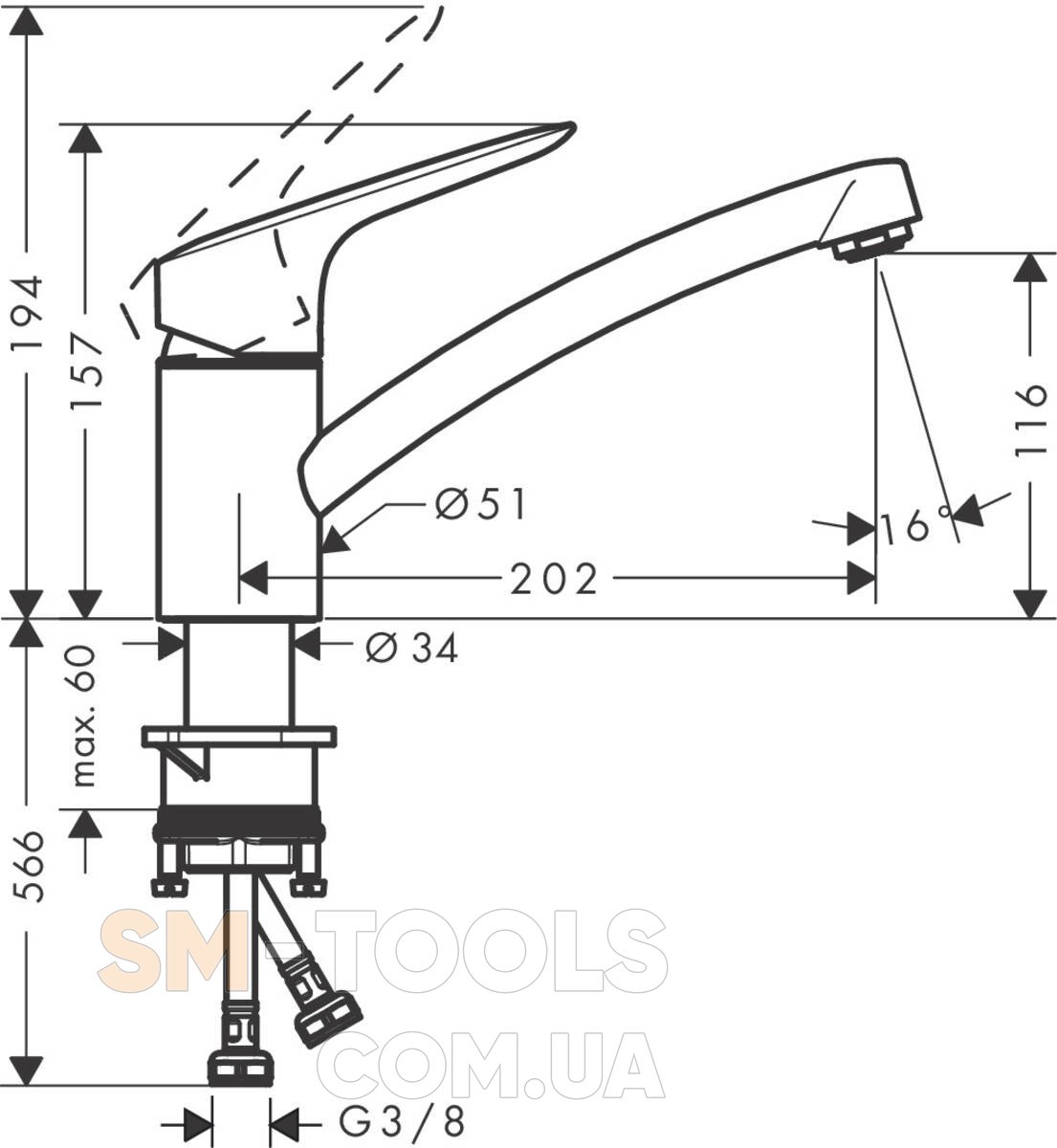 Змішувач для кухні Hansgrohe Logis KM120 71830000