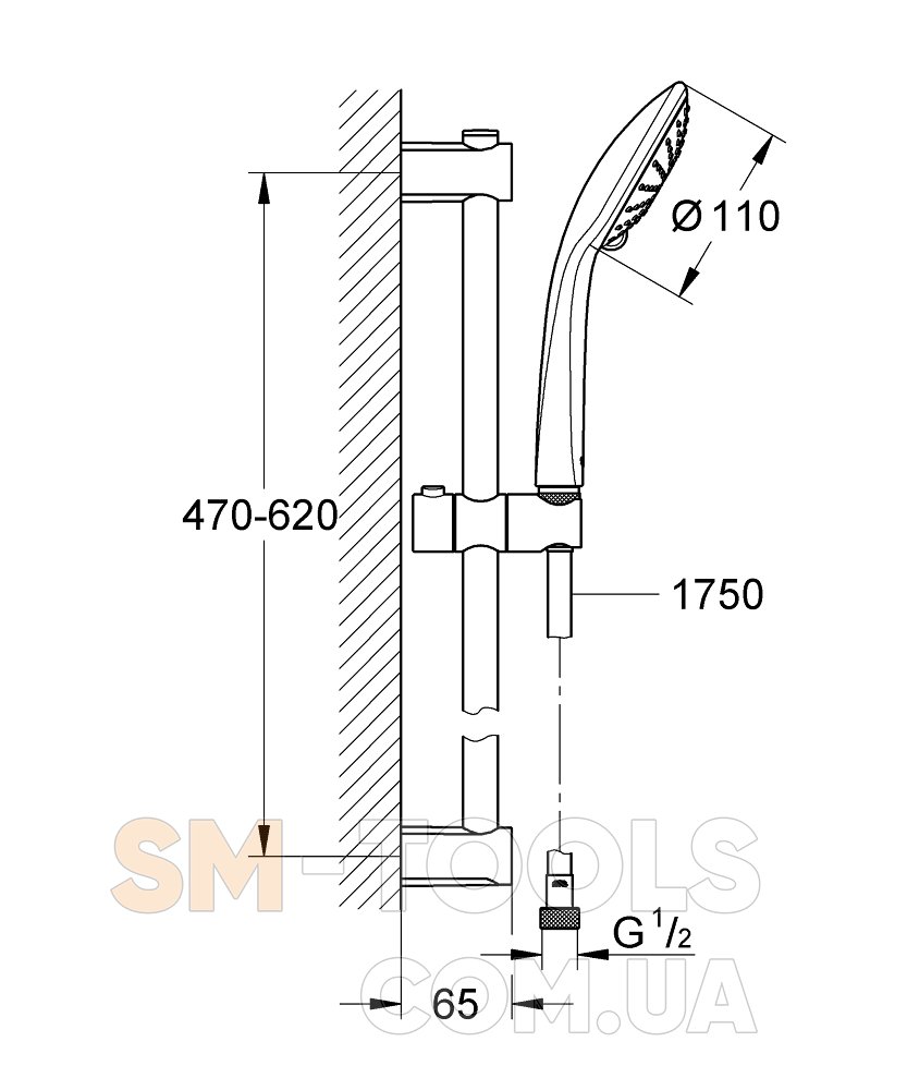 Довжина шлангу, мм: 1750 мм