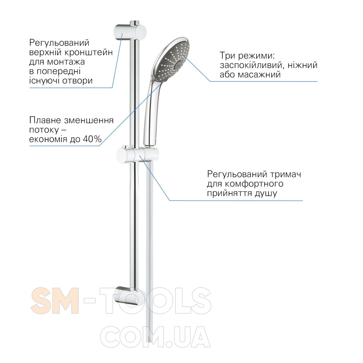 GROHE QuickFix (верхнє кріплення регулюється по вісоті для легкої установки в існуючі отвори)
