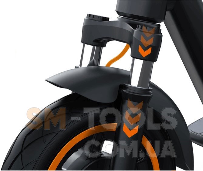 3) Надзвичайна перевага Yadea KS5 PRO- це суцільнолиті 10-дюймові шини, що не потребують обслуговування. А передній амортизатор забезпечує максимальний комфорт навіть по нерівній дорозі.