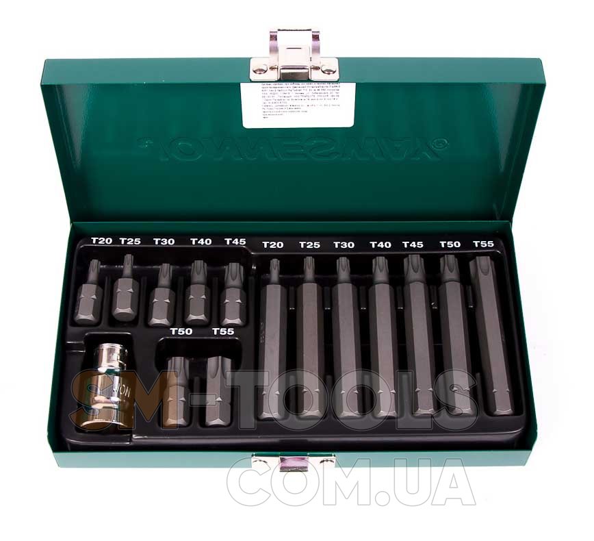 Комплект торцевых головок Jonnesway S29H4215S используется дома, в мастерских, на производствах. Предназначен для работ с болтами, имеющими рабочий профиль TORX. Более длинные биты позволяют откручивать и закручивать болты находящиеся в глубоких пазах.