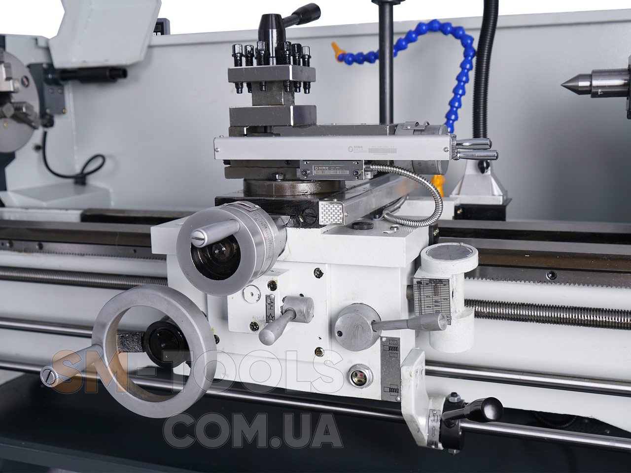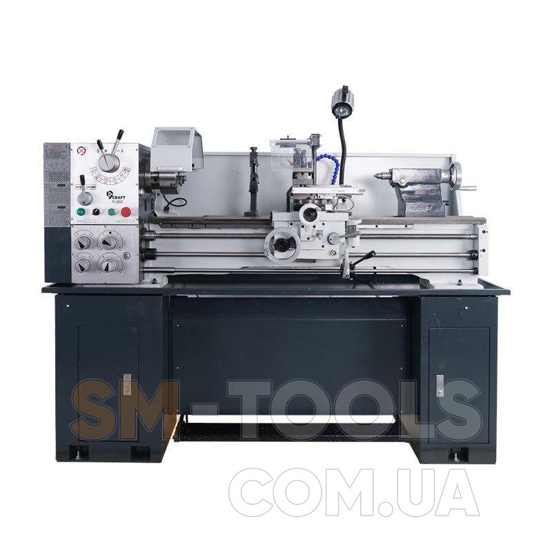 Токарно-гвинторізний верстат 9craft PL360 призначений для токарної обробки деталей в умовах дрібносерійних виробництв, а також ремонтних майстерень. Особливостями даної моделі є збільшений прохідний отвір у шпинделі діаметром 52 мм, а також наявність ножного гальма. Швидкість обертання шпинделя змінюється за допомогою зміни передавального відношення у коробці швидкостей. На цьому верстаті можна нарізати дюймові та метричні різьблення. Є поздовжня та поперечна автоподача. Даний верстат може бути у виконанні для мереж з напругою 220 та 380в. Стандартна комплектація: 3-кулачковий патрон (?200 мм) 4-х кулачковий патрон (?200мм) 4-позиційний різцетримач Нерухомий люнет Рухливий люнет Лоток для стружки Ніжне гальмо Планшайба Захисний екран Характеристики: Відстань між центрами 1000 мм Діаметр обробки над станиною 305мм Діаметр обробки над виїмкою (ГАП) 355мм Максимальний діаметр обробки над поперечним супортом 220мм Ширина станини 186 мм Конус отвору шпинделя КМ6 Прохідний отвір шпинделя 52 мм Кількість швидкостей шпинделя 8 Діапазон швидкостей шпинделя 70-2000 об/хв Діапазон подачі 0,091 – 2,553 мм/об; 0,025 – 0,69 мм Діапазон метричних різьблень 0,25 - 11 мм (23) Діапазон дюймового різьблення 4 - 112 T.P.I (40) Крок різьблення ходового гвинта 3 мм або 8 ниток/дюйм Хід малої поздовжньої подачі 74 мм. Хід поперечного подавання 170 мм. Хід пінолі задньої бабки 95мм Діаметр пінолі задньої бабки 32 мм Конус пінолі задньої бабки MT3 Двигун 1,5 кВт Додаткова комплектація: Кришка ходового гвинта Захисний екран різцетримача Галогенова лампа 2-осьове УЦІ 3-осьове УЦІ