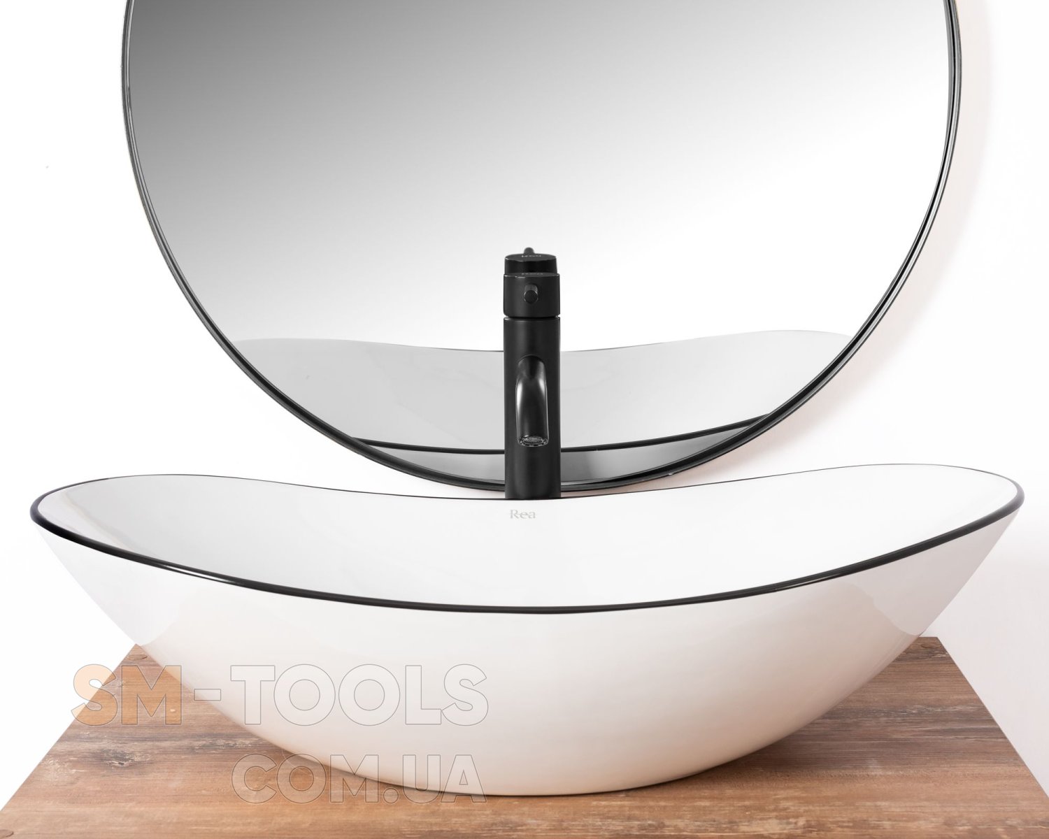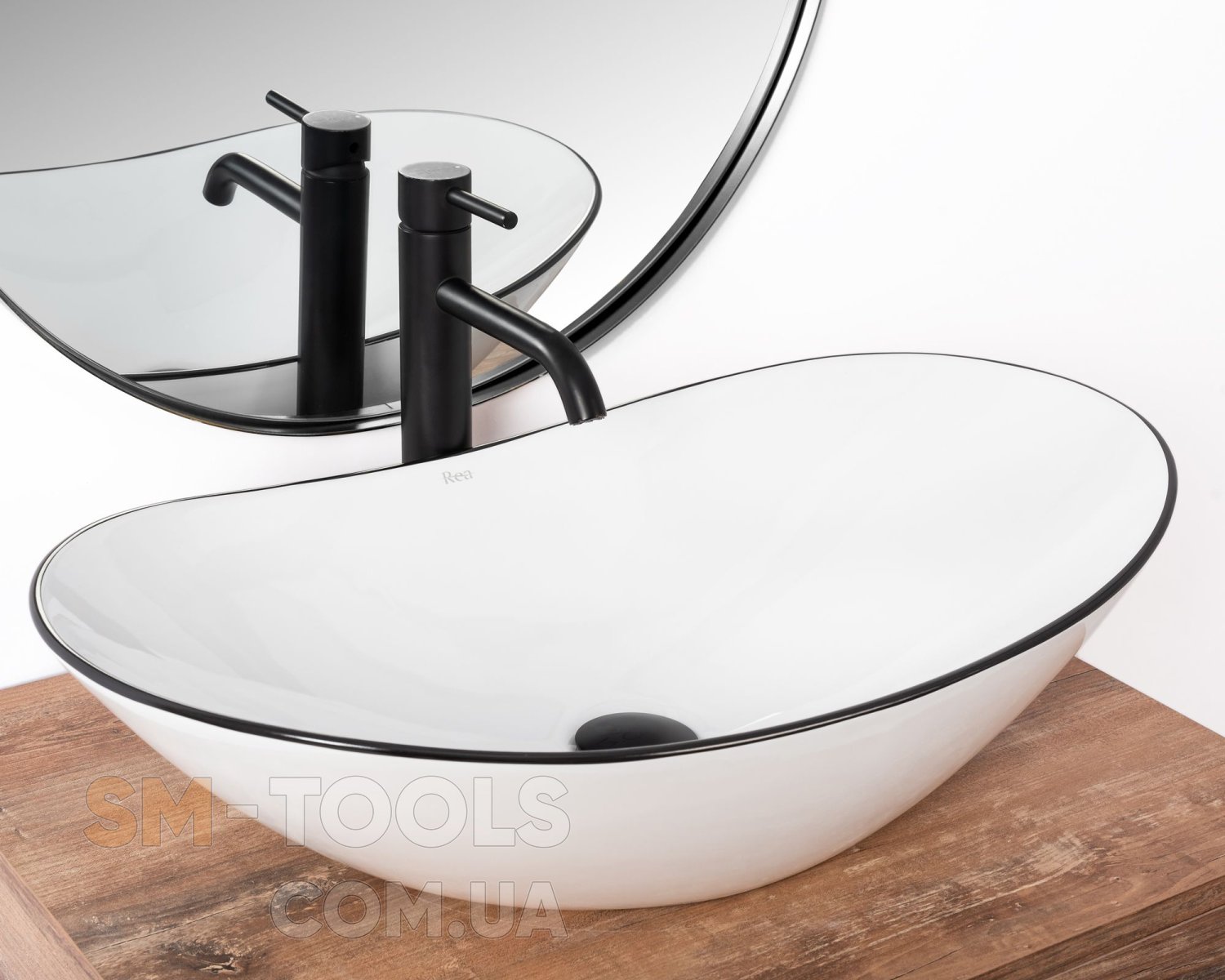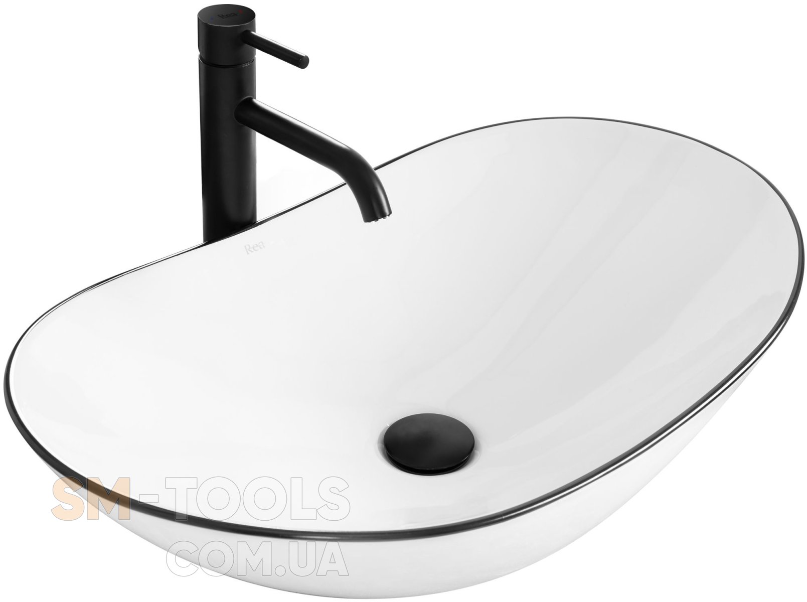 Опис Умивальник (раковина) REA ROYAL BLACK EDGE накладний білий: