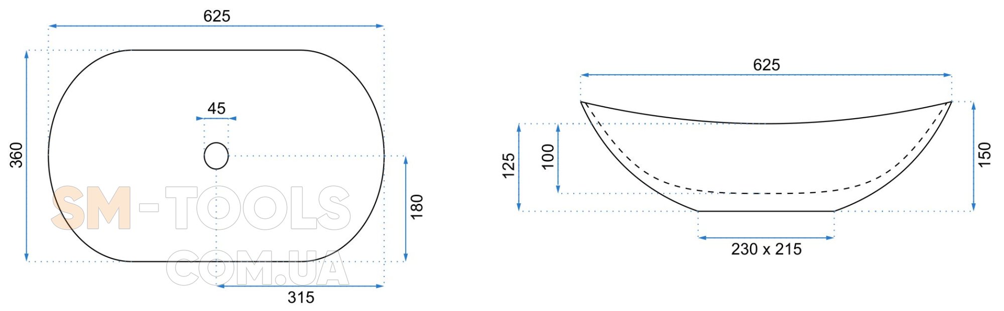 Наличие отверстия для перелива : нет