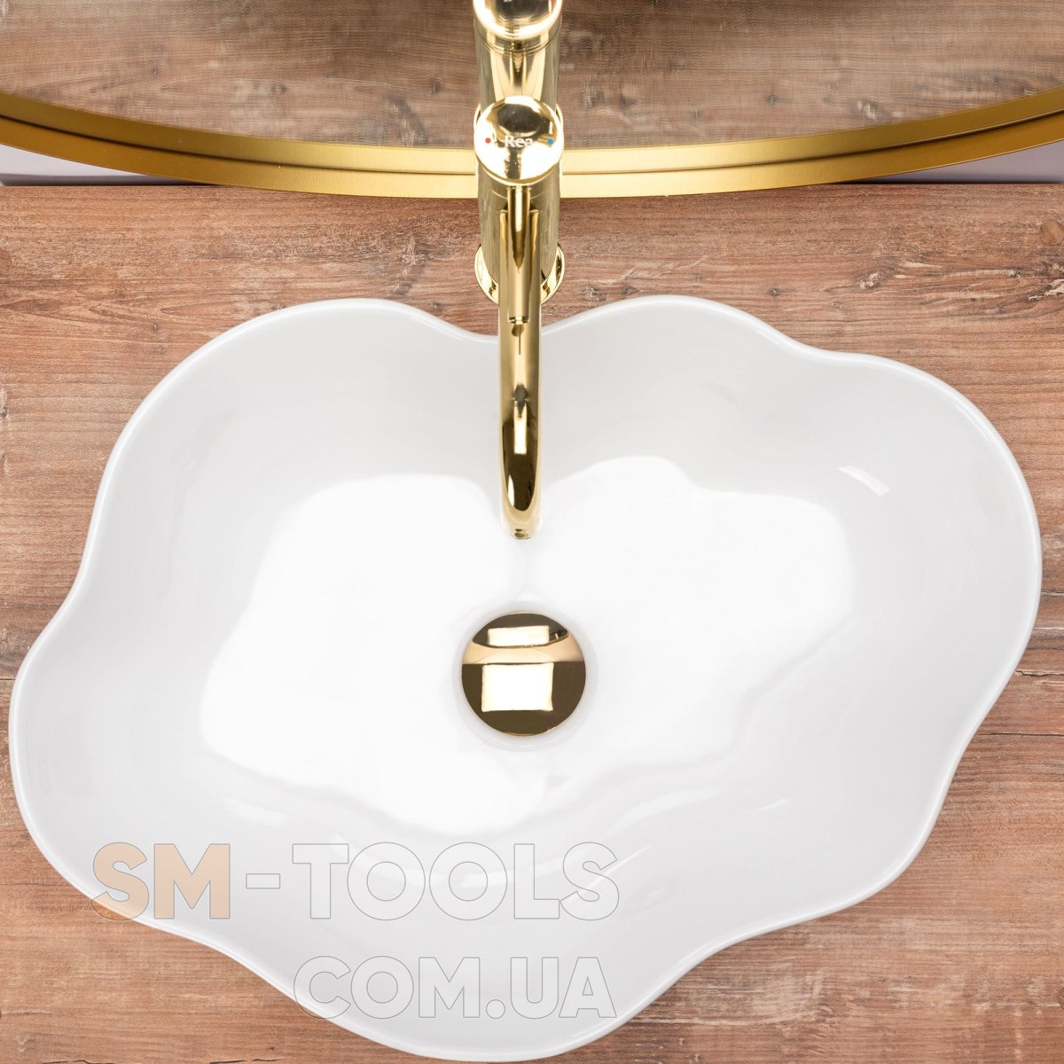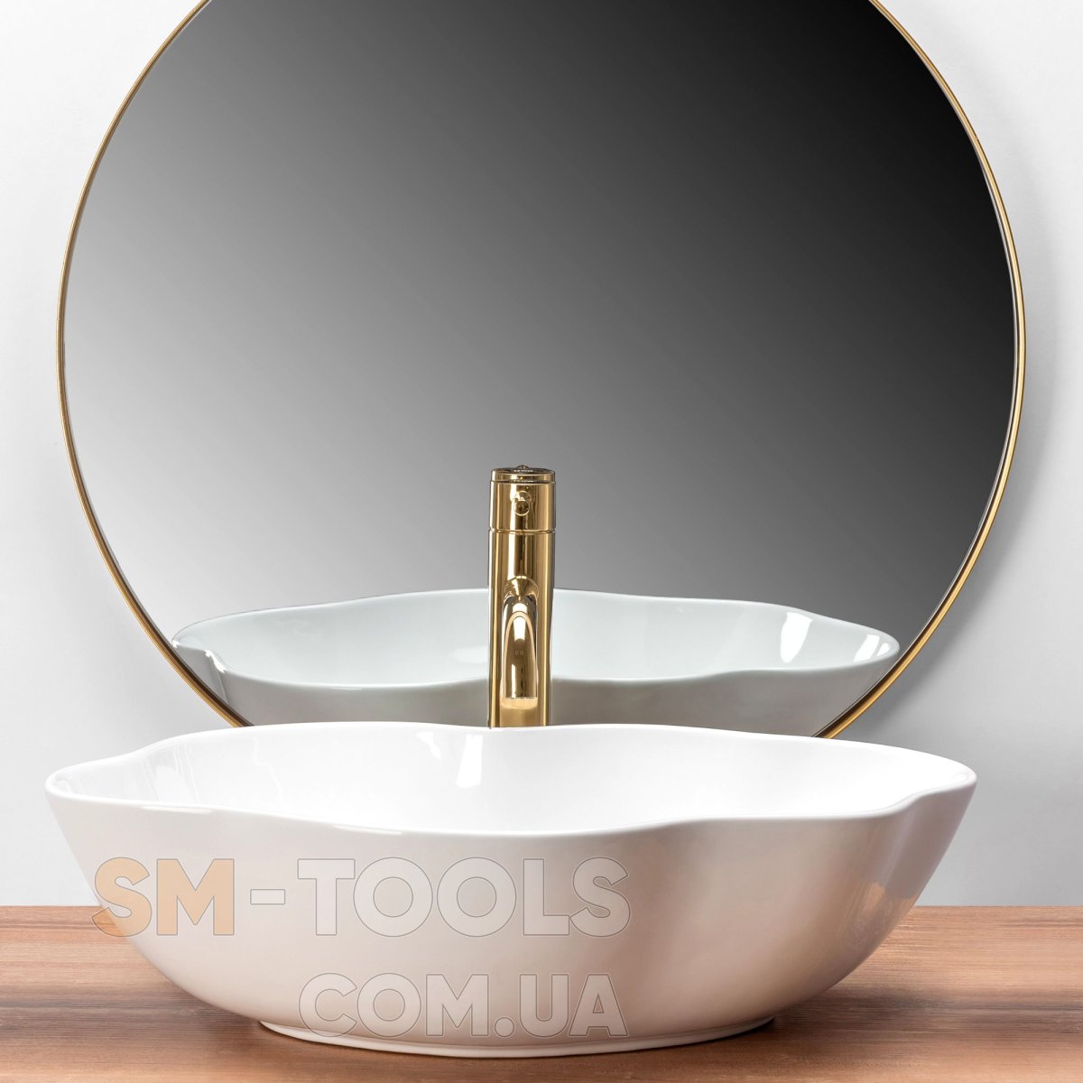 Раковина виготовлена ??з білої кераміки найвищої якості та має овальну хвилясту форму. Умивальник чудово підійде любителям нестандартних форм, привносячи елегантність в облаштування ванної кімнати вдома та в офісі. Завдяки особливому етапу виробництва він міцний та легко миється.