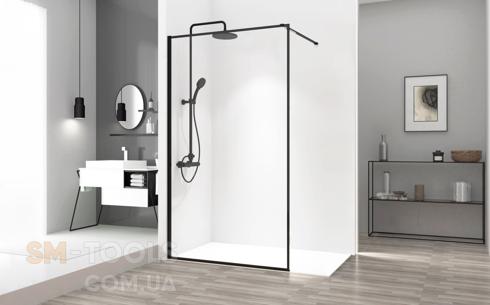 Сучасний дизайн з тонким натяком на геометрію обов'язково освіжить будь-який інтер'єр ванної кімнати та внесе дивовижну атмосферу, незалежно від того, чи витриманий інтер'єр у сучасному, вінтажному чи будь-якому іншому стилі. Чорні профілі у поєднанні з прозорим склом – не що інше, як ідеальний баланс у дизайні всього продукту. Чорні лінії, що йдуть уздовж стіни, створюють збалансований візерунок - ще одна цінність, яка тішить око навіть найвишуканіших. Алюмінієвий кронштейн, що регулюється, завершує всю композицію своїм мінімалізмом. Душова стінка Bler - це не тільки необхідність у повсякденній гігієні, це також час для моменту розслаблення, якого ви заслуговуєте після довгого дня. Ми доклали всіх зусиль, щоб продукт, крім висококласної функціональності, став унікальним елементом вашої ванної кімнати і радував не тільки тіло, а й очі. Дозвольте собі перетворити вашу ванну на щось більше, ніж просто місце, де можна освіжитися. Для максимального комфорту наша стіна покрита інноваційним нанопокриттям Easy Clean – технологією, що дозволяє утримувати стіну в ідеальному порядку з мінімальними зусиллями. Підтримуйте ідеальну чистоту без використання сильнодіючих миючих засобів. Крім того, прикріплена до підлоги планка захищає душове скло від пошкоджень. Чорний колір наноситься в процесі виробництва, а потім двічі загартовується разом із листом при 600-800°C. Це гарантує 100% зносостійкість та стійкість до подряпин та механічних пошкоджень. Це єдиний спосіб, що забезпечує високу якість і довговічність. Доступна в нашому реченні душова стінка Rea Bler 100 має висоту менше 2 метрів. Це означає, що з комфортом у ньому можуть приймати душ як високі, так і низькі люди. Виріб чудово працює як душова кабіна. Для його виготовлення використовувалося прозоре загартоване скло завтовшки 8 мм. Чорні алюмінієві профілі мають ширину 32 мм та товщину 17 мм. Завдяки їм вся конструкція набуває неповторного характеру.