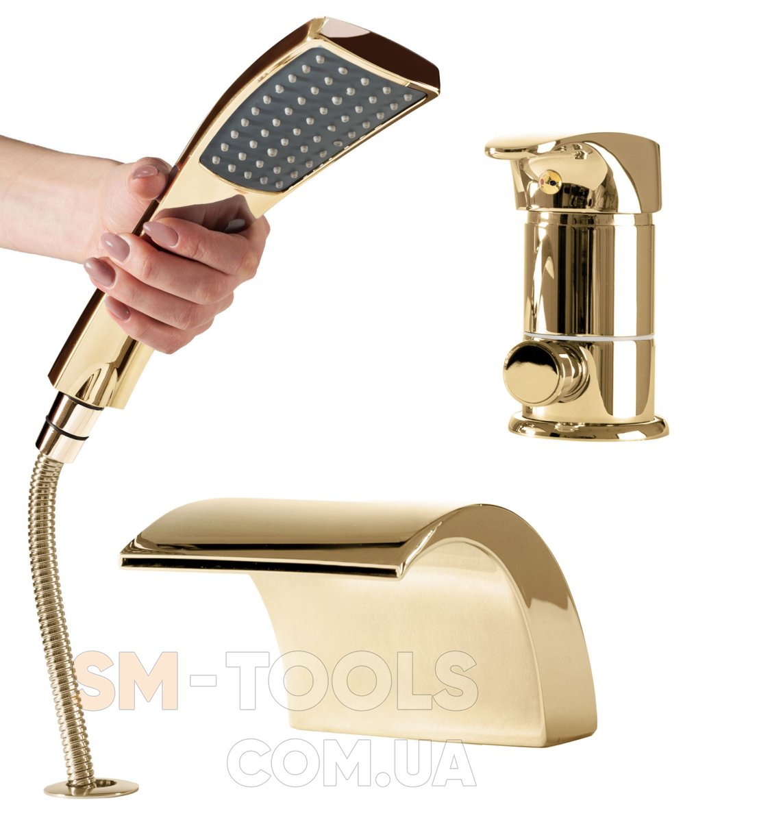 Опис Змішувач для ванни REA RIVEN GOLD золотий на борт ванни: