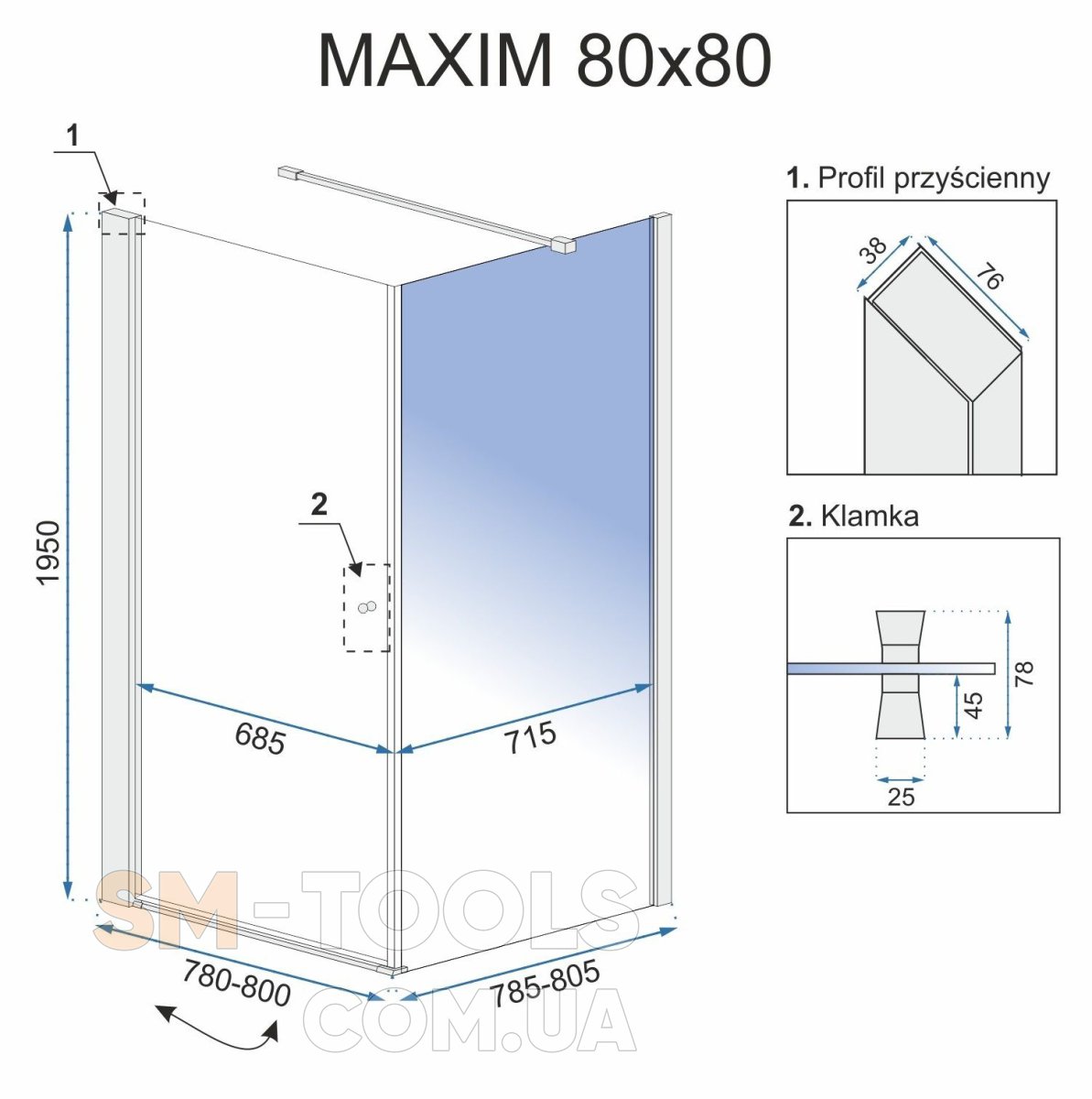 Характеристики Душова кабіна REA MAXIM 80х80 L: