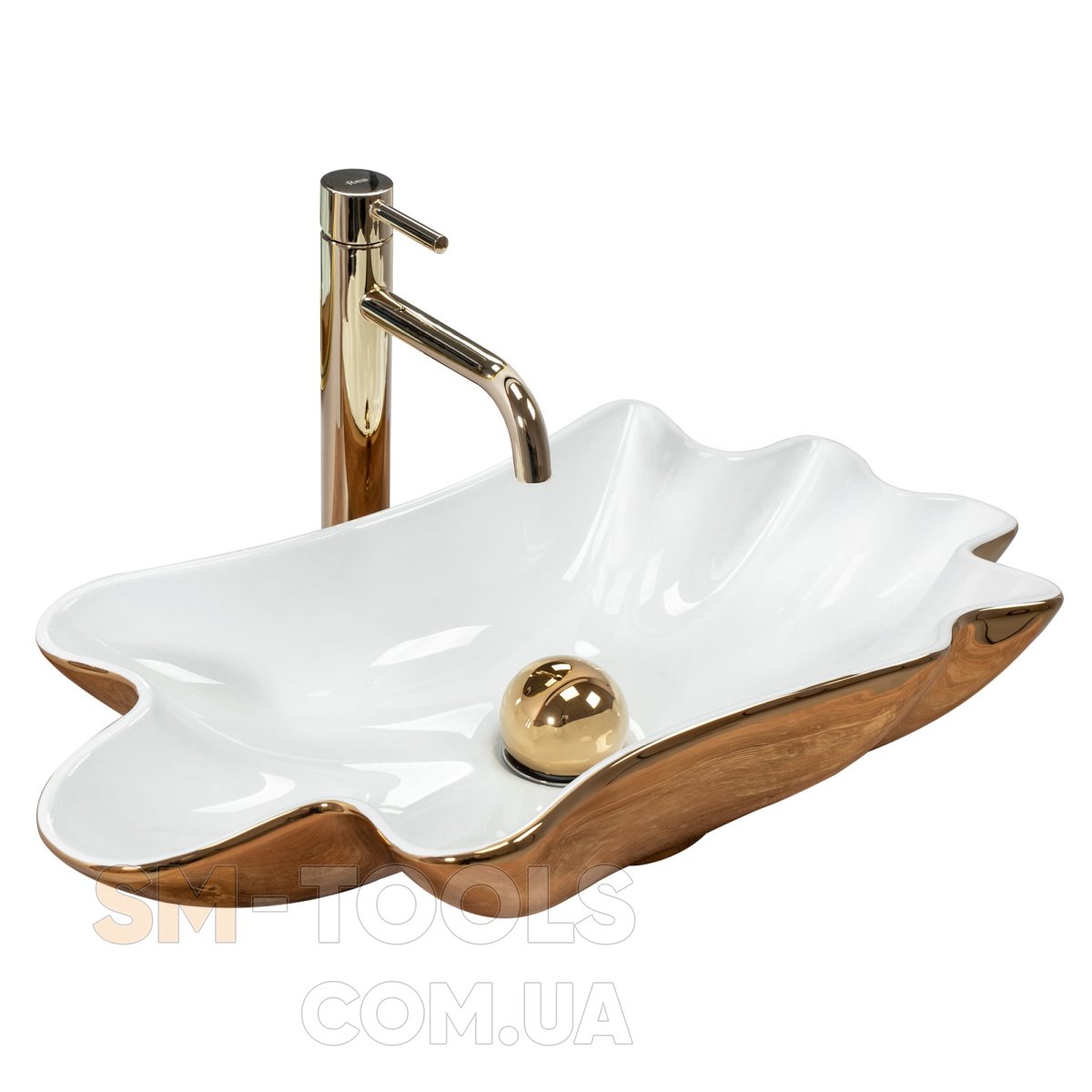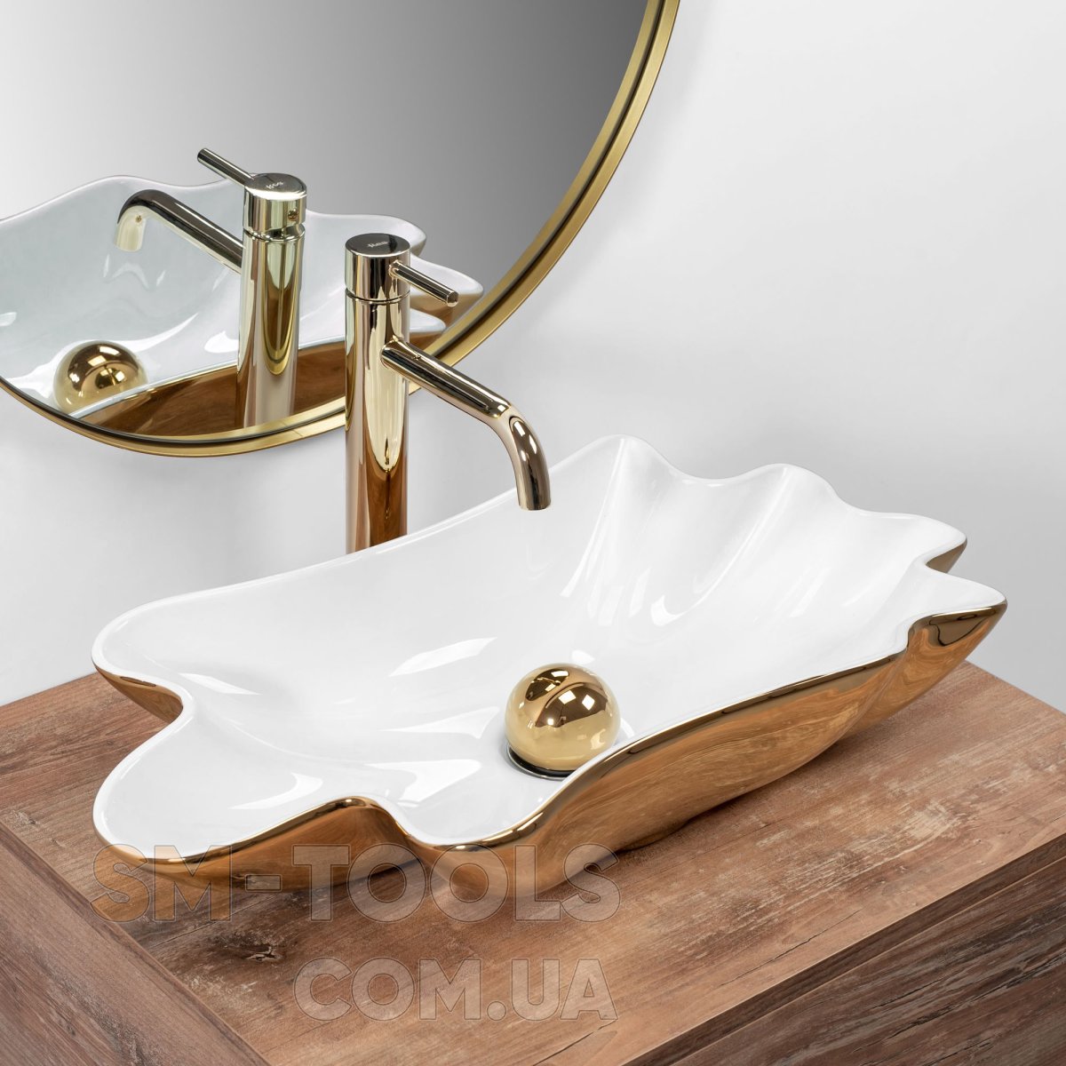 Опис Умивальник (раковина) REA INFINITY WHITE GOLD накладний білий/золото: