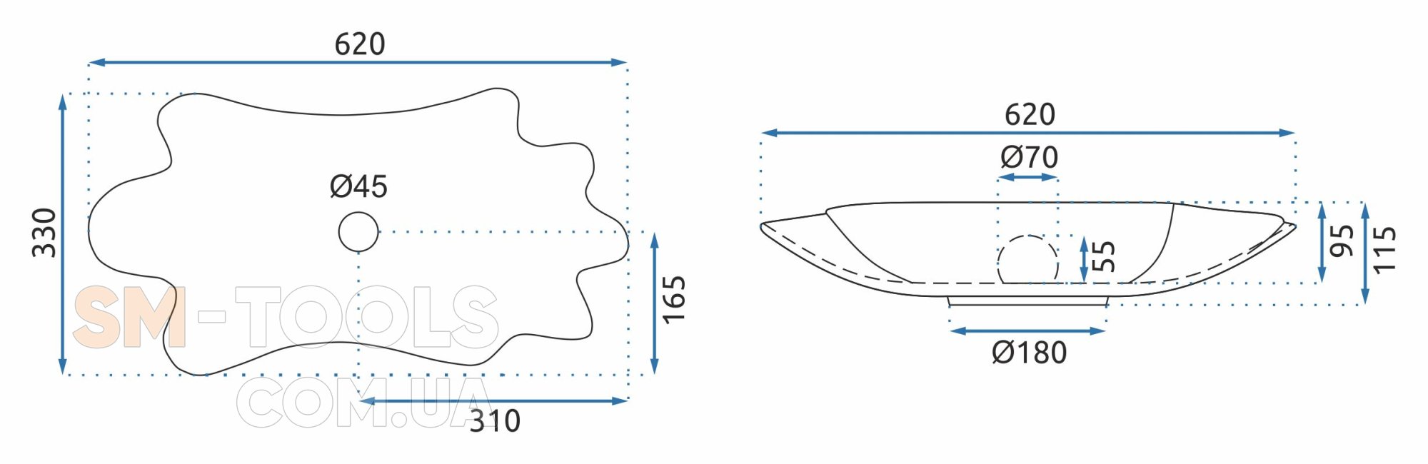 Раковина виготовлена ??з чорної кераміки найвищої якості та має овальну хвилясту форму. Умивальник має золотистий обідок, що дає чудовий кінцевий результат. Умивальник неймовірно привабливий для очей, він чудово підійде любителькам нестандартних форм, привносячи елегантність в облаштування ванної кімнати вдома та в офісі. Умивальник пристосований для встановлення на стільницю або шафу. Виготовлений із якісної сантехнічної кераміки. Завдяки спеціальній стадії виробництва він міцний та легко миється. У комплекті з мийкою йде золота пробка click-clack у формі кулі.