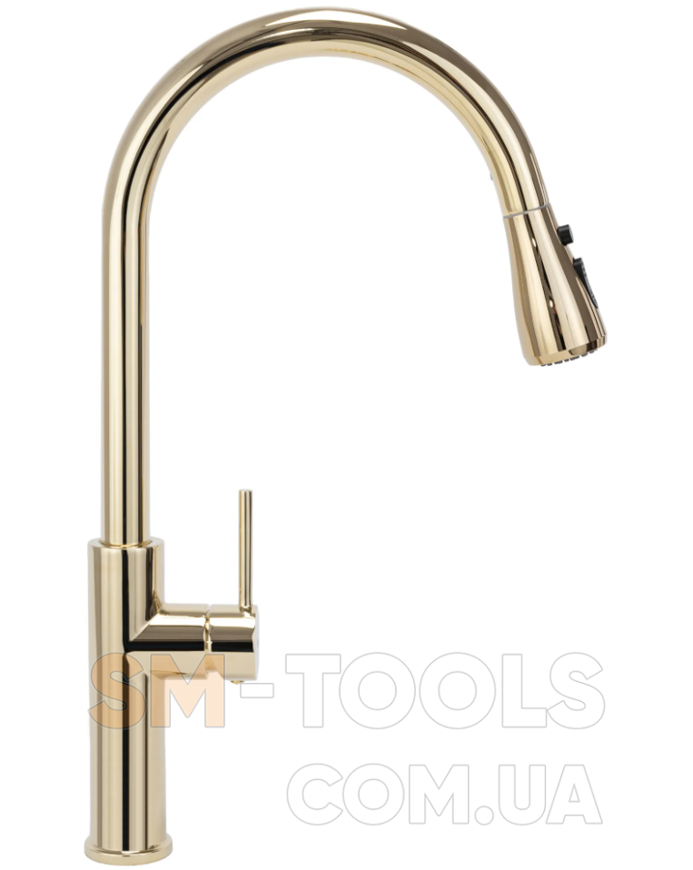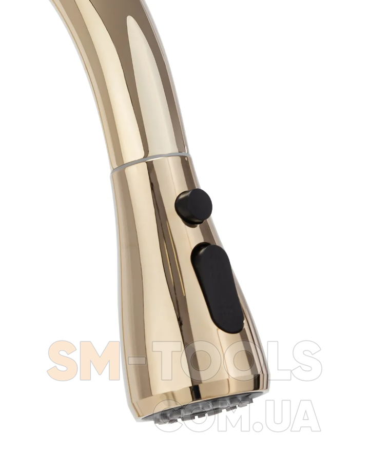 Основа будь-якої функціональної кухні – правильний кухонний змішувач. Латунний корпус є гарантією довговічності та стабільності батареї. Покриття шаром хрому надає змішувачам стійкості до забруднень, а позолочений розпис незвичайний вигляд, який ідеально поєднуватиметься з декором вашої кухні. Довготривала надійність гарантується використанням керамічної головки. Вигнутий носик дозволяє направити струмінь у будь-яке місце. На кінчику носика є перемикач, який дозволяє вибирати між розсіяним струменем і концентрованим струменем.