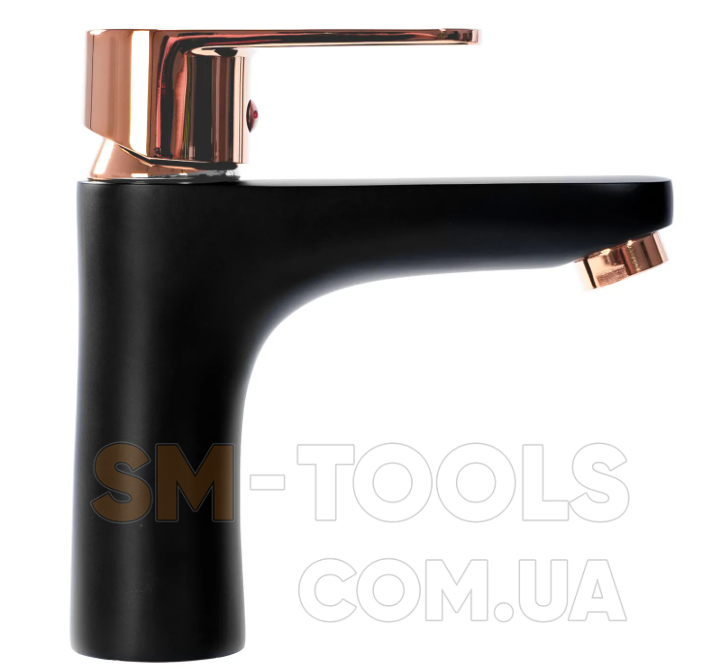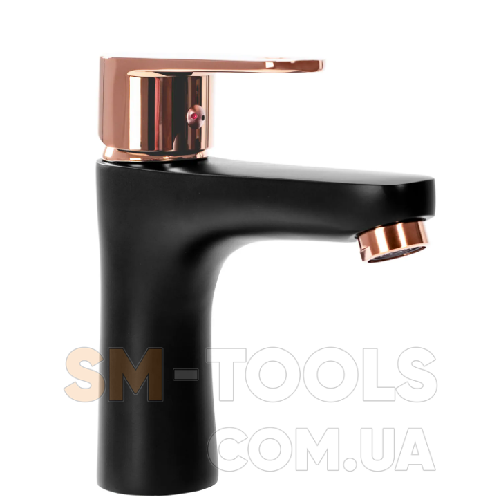 Опис Змішувач для умивальника (раковини) REA MILD BLACK ROSE GOLD низький: