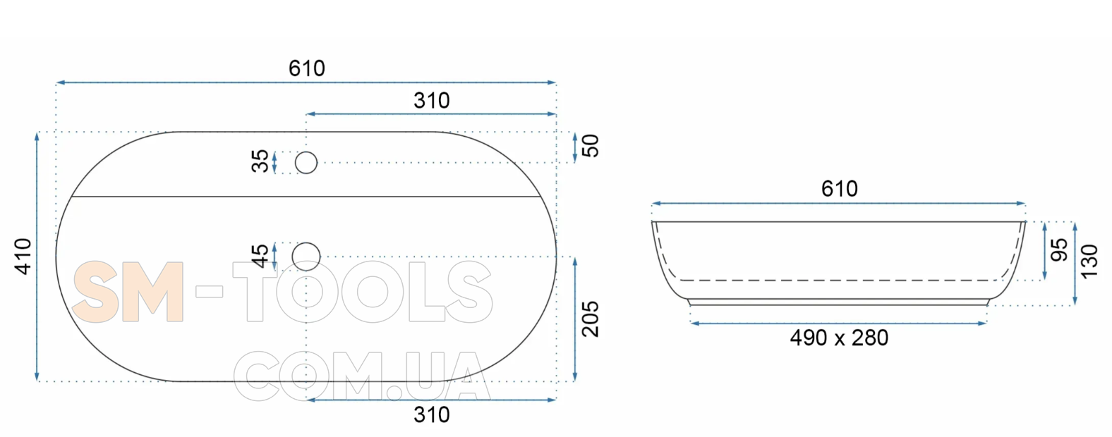 Наличие отверстия для перелива : нет