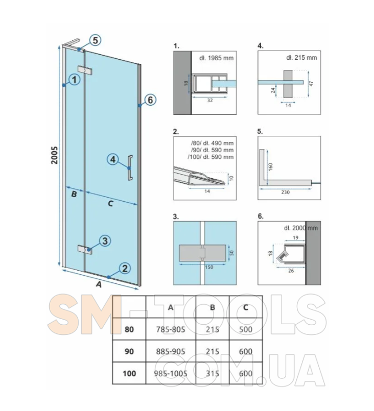 Характеристики Душові двері REA HUGO BLACK 90: